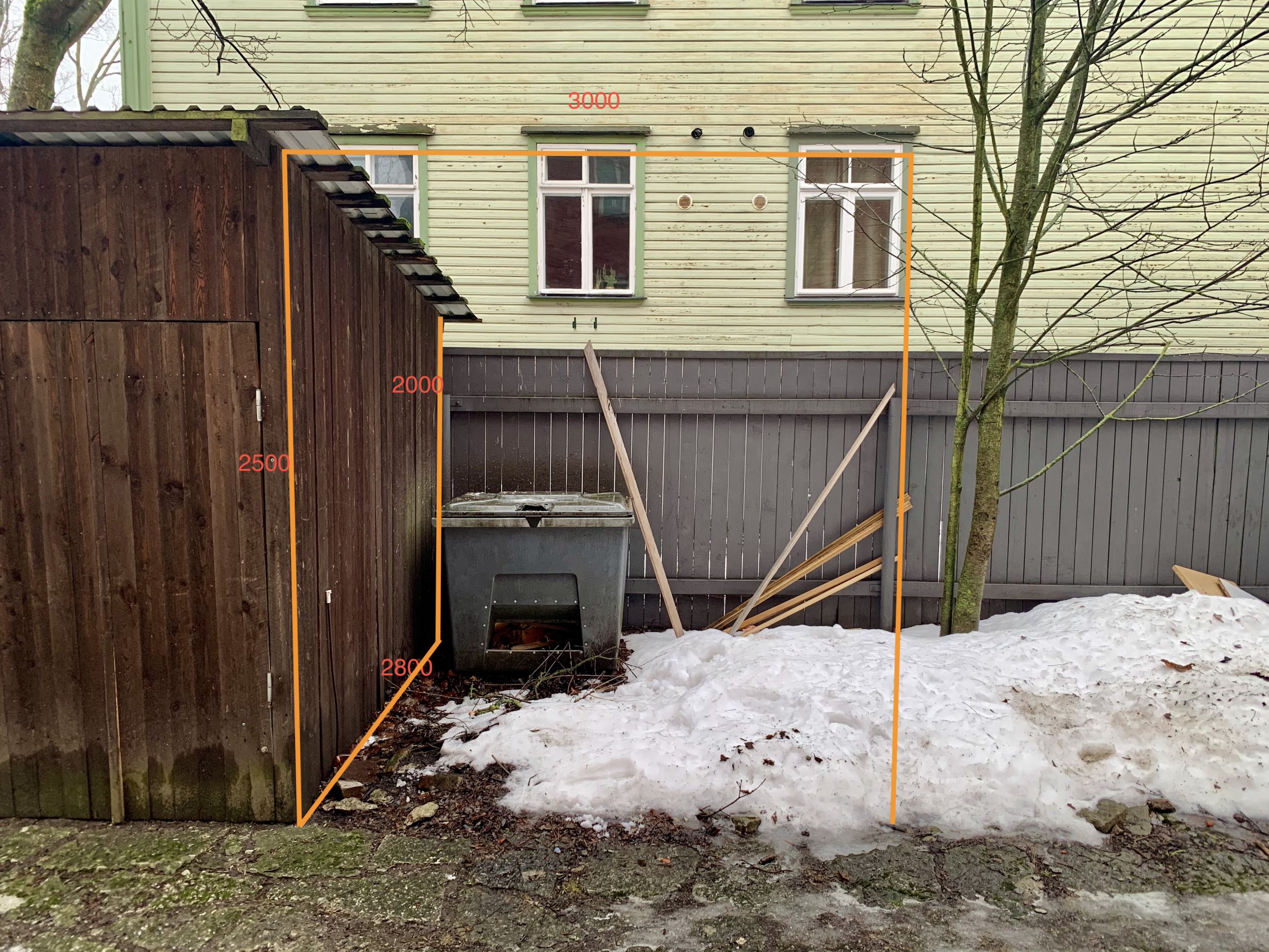 - Tulemus võiks välja näha nagu Joonis 2, ehk ehitada tuleb postid, talad, läbipaistev katus ja otsatara. Ilmselt mahub sinna kolm hoidjat, mis võiks välja näha sama kenad kui pildil, mitte torud. Pinnaseks on hetkel muld, ses osas ideed puuduvad.