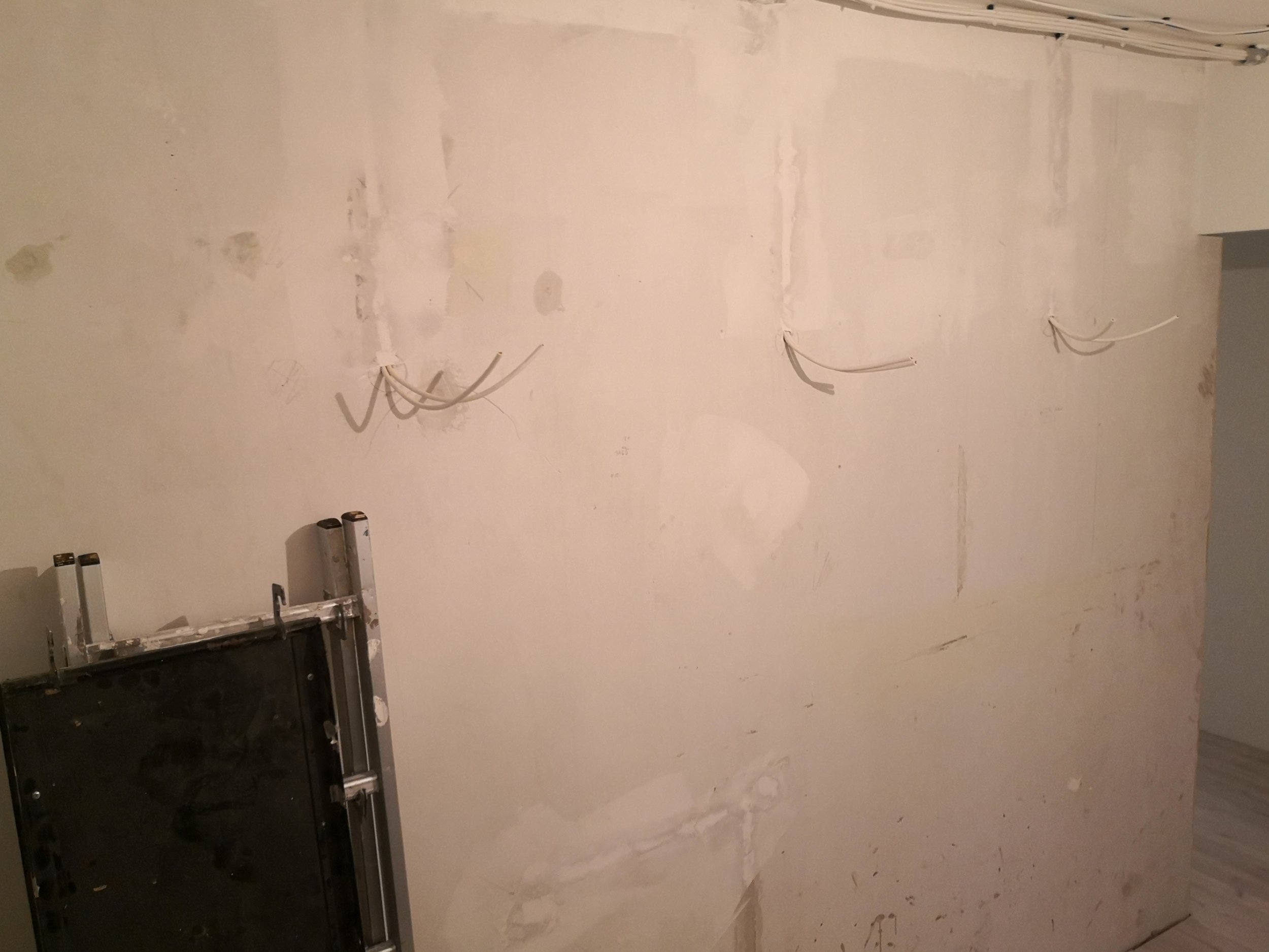 Seinte peale tuleb kokku 5 valgustit. Kivi tuleb panna valgustite ümber (mitte kivi peale). Valgusti kinnituskoht on näidatud pildi peal. Lisaks on olemas ka 2-ne pistikupesa koht. Üleval tuleb pinglagi. Kuna korteris on maalritööd juba tehtud oleks vaja leida viis kuidas teha antud töö ilma suure tolmuta.