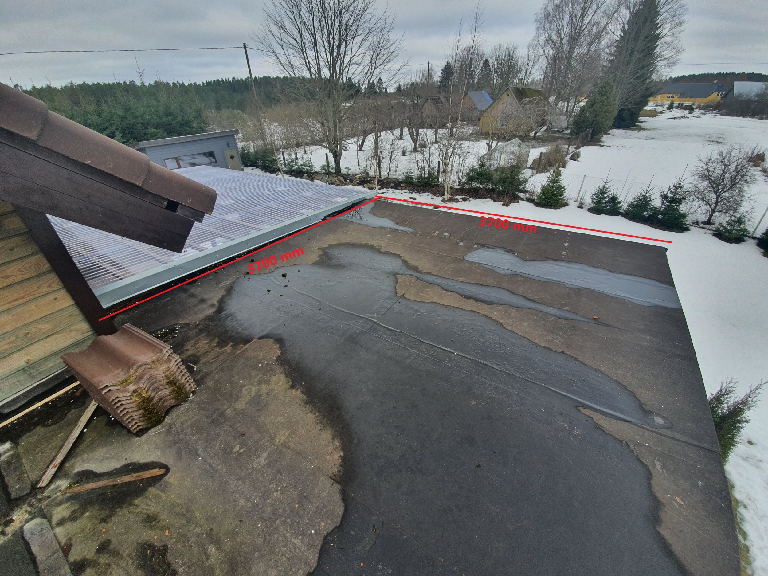 Sbsi lammutus, uus osb pind ja pvc katusematerjal koos paigaldusega ja seinaga ühendamisega.