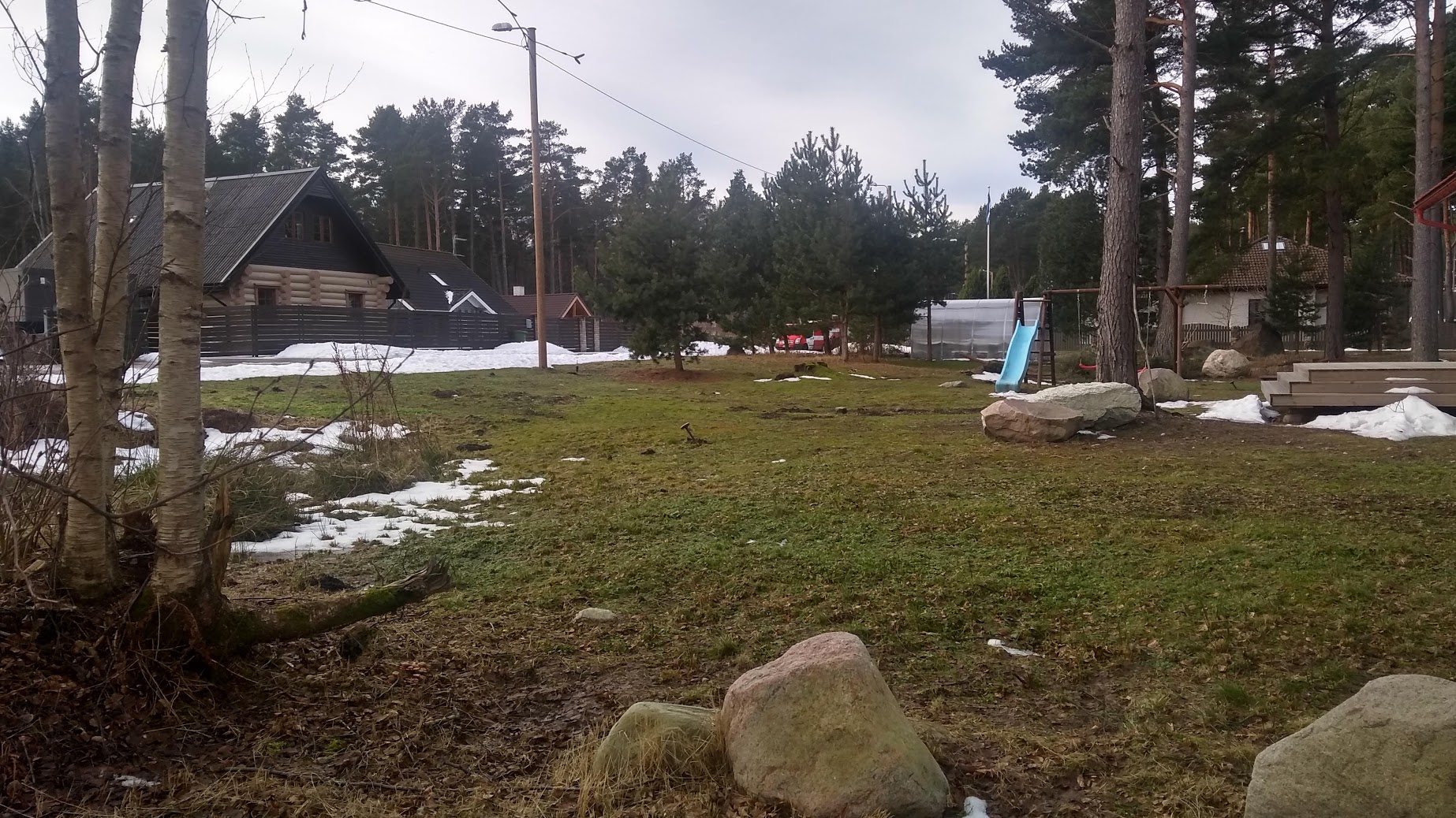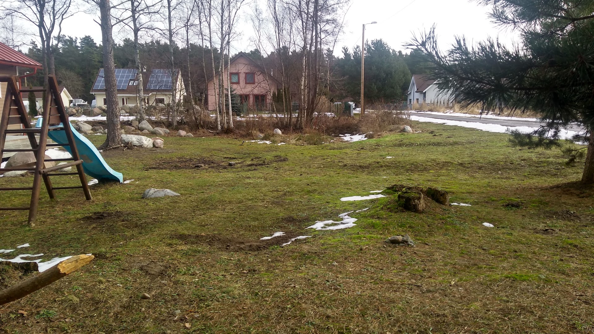 1. Немного очистите территорию (нужно убрать деревья и камни).