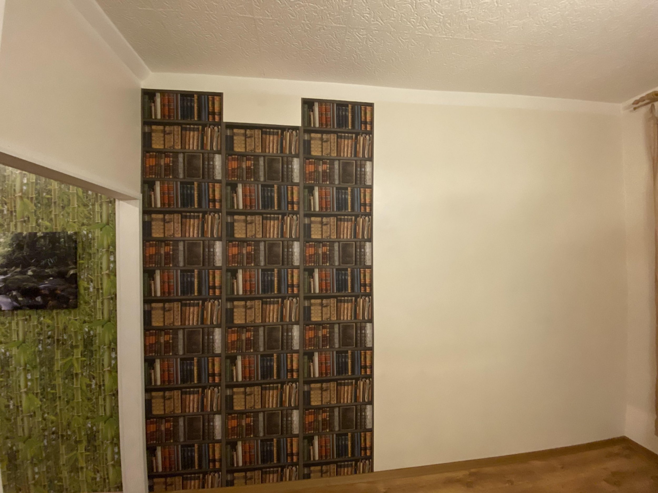 Kahel seinal osaline tapeedi mahavõtmine, värvimise ettevalmistustööd ning värvimine. Kahe seina pindala ca 18 m2.