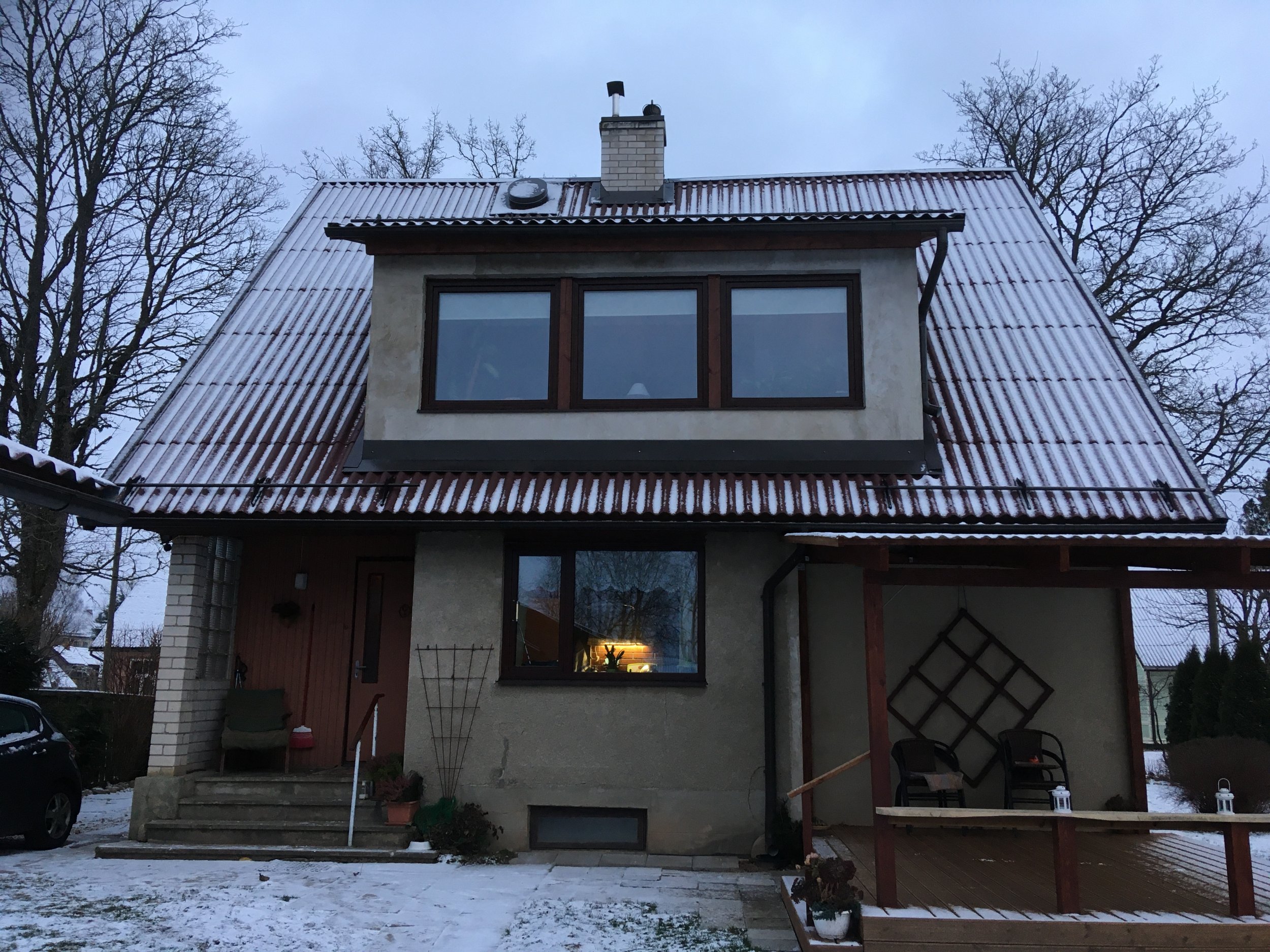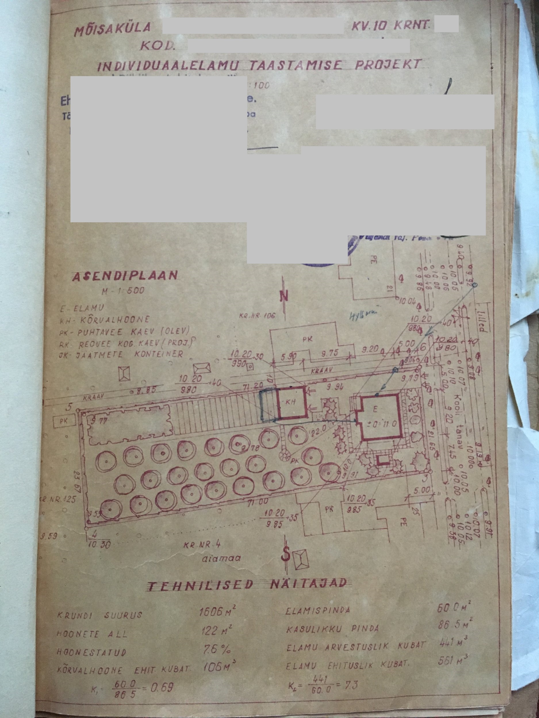 PAkkumishind sisaldab: Seletuskiri Asendiskeem (Maa-ameti ortofotol) Hoone plaanid Hoone lõige Hoone vaated Vajalikud sõlmjoonised (sokkel/välissein, aken välisseinas jms) Kooskõlastused ehitusteatise registreerimsieks Ehitusteatise esitamine KOV Ehitusteatise registreerimine KOV Riigilõivuvaba NB! Võrreldes hoone pilte ja projekti, esinevad erinevusd - tegelikult on hoonel 2 vintskappi+varikatus jms) Kas teostatud muudatused on seaduslikul teel tehtud (olemas projekt)? Kui mitte, siis tuleb varasemalt teostatud tööd koostatava projekti raames seadustada. See aga toimub juba lisasumma eest |