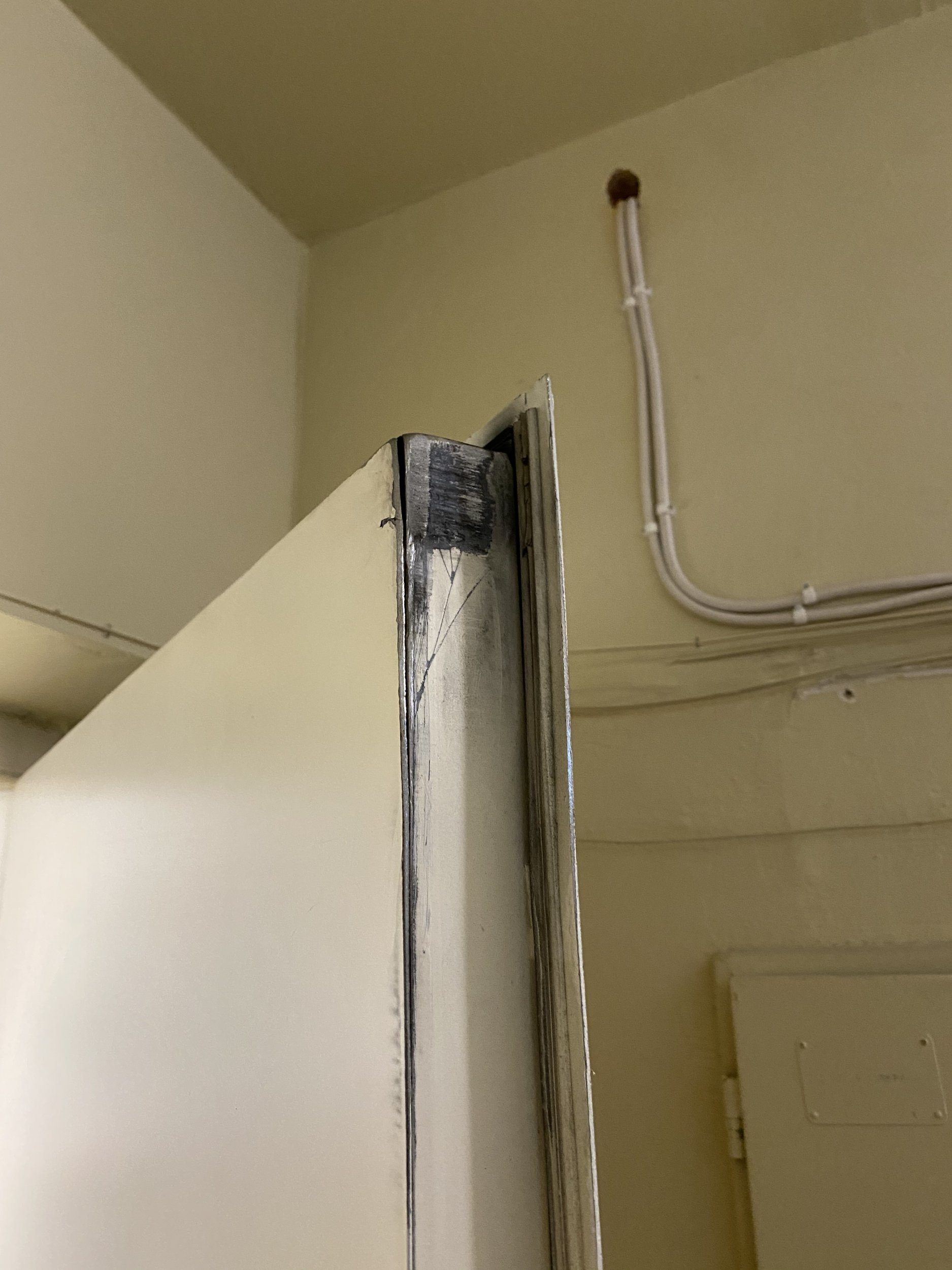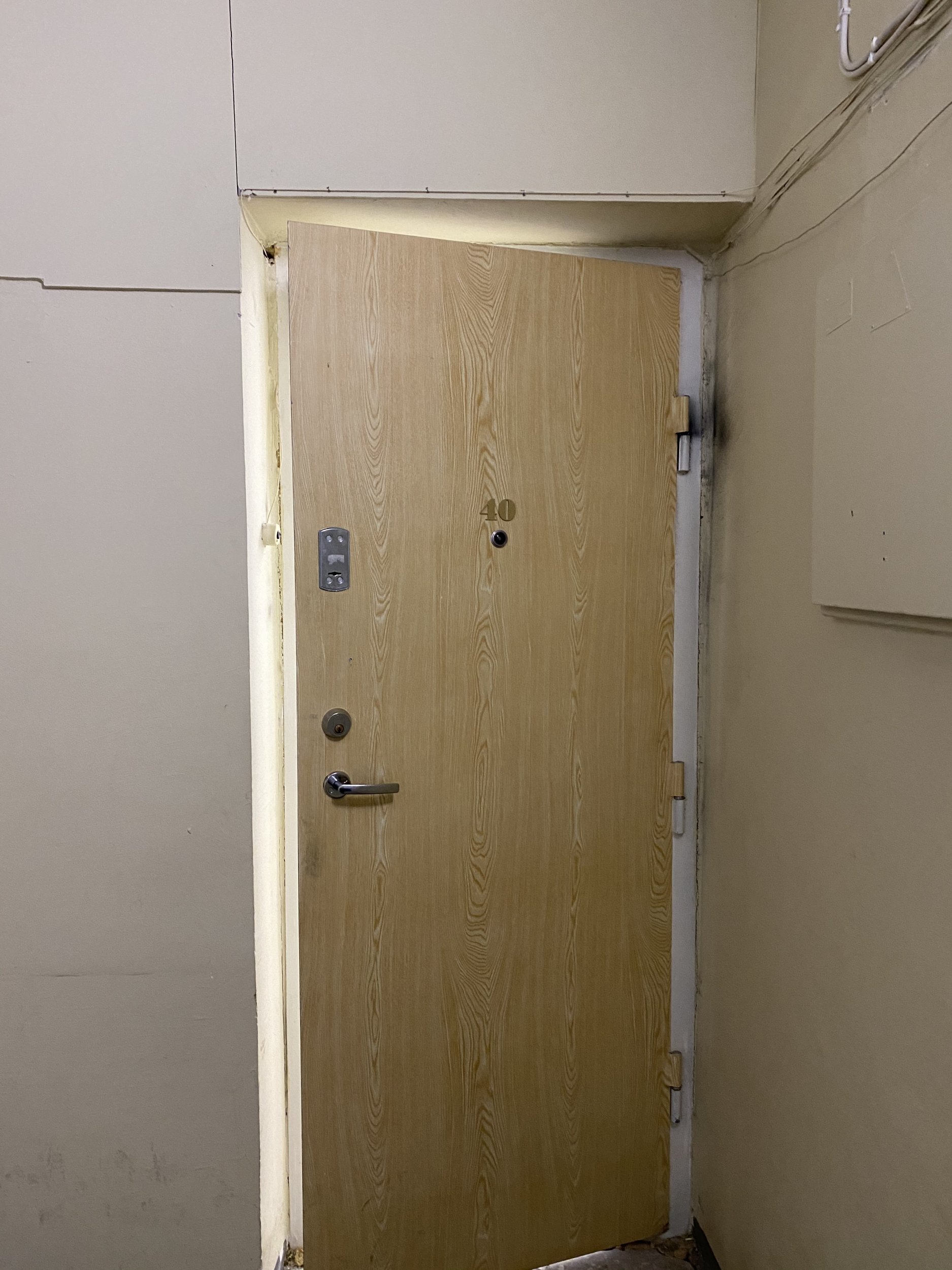 Metallukse hing on vajunud ja uks ei käi korralkult kinni.