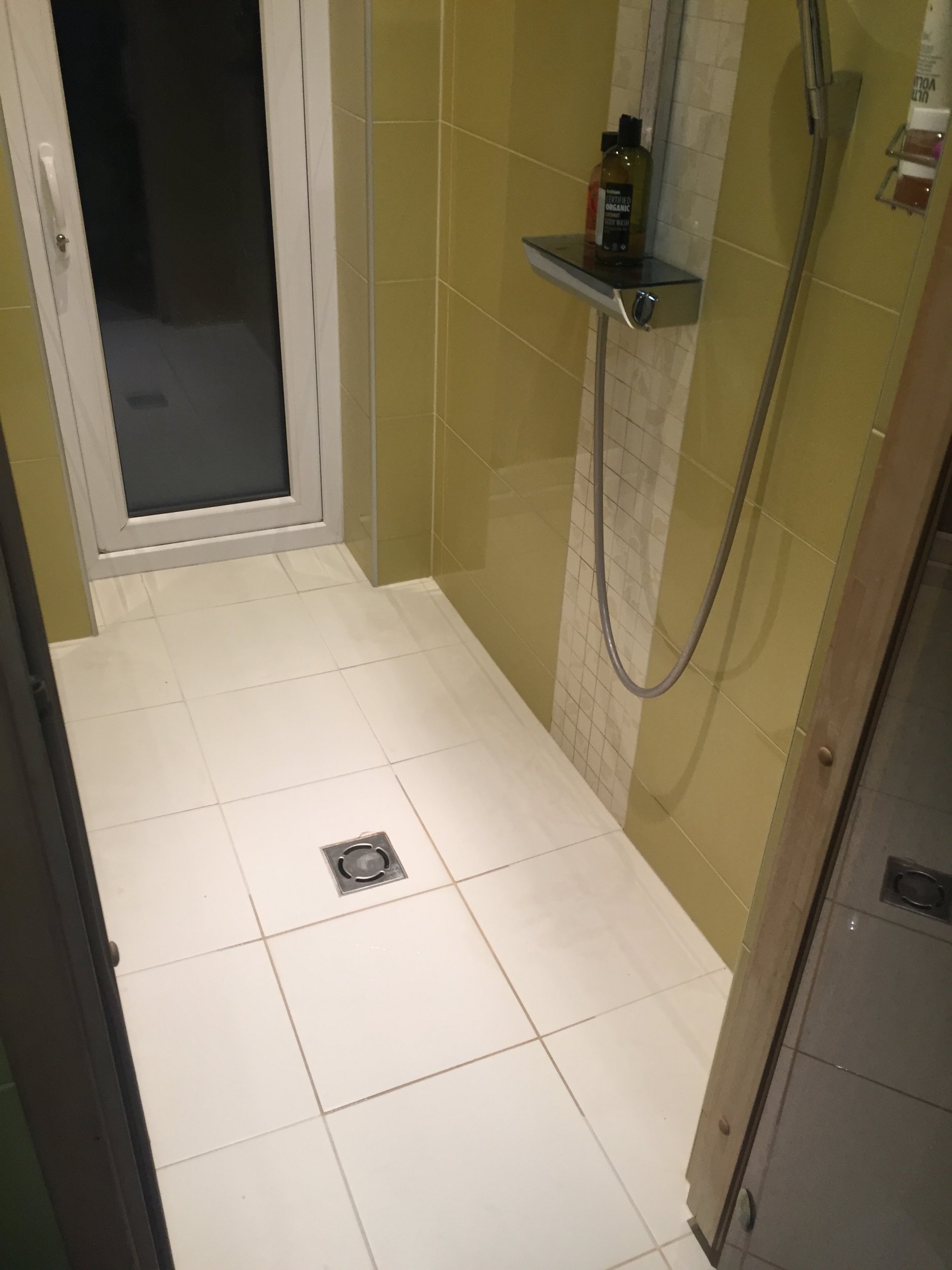 *dušširuumi põranda(ca 2m2) ja seinte (ca14m2) plaatimises,