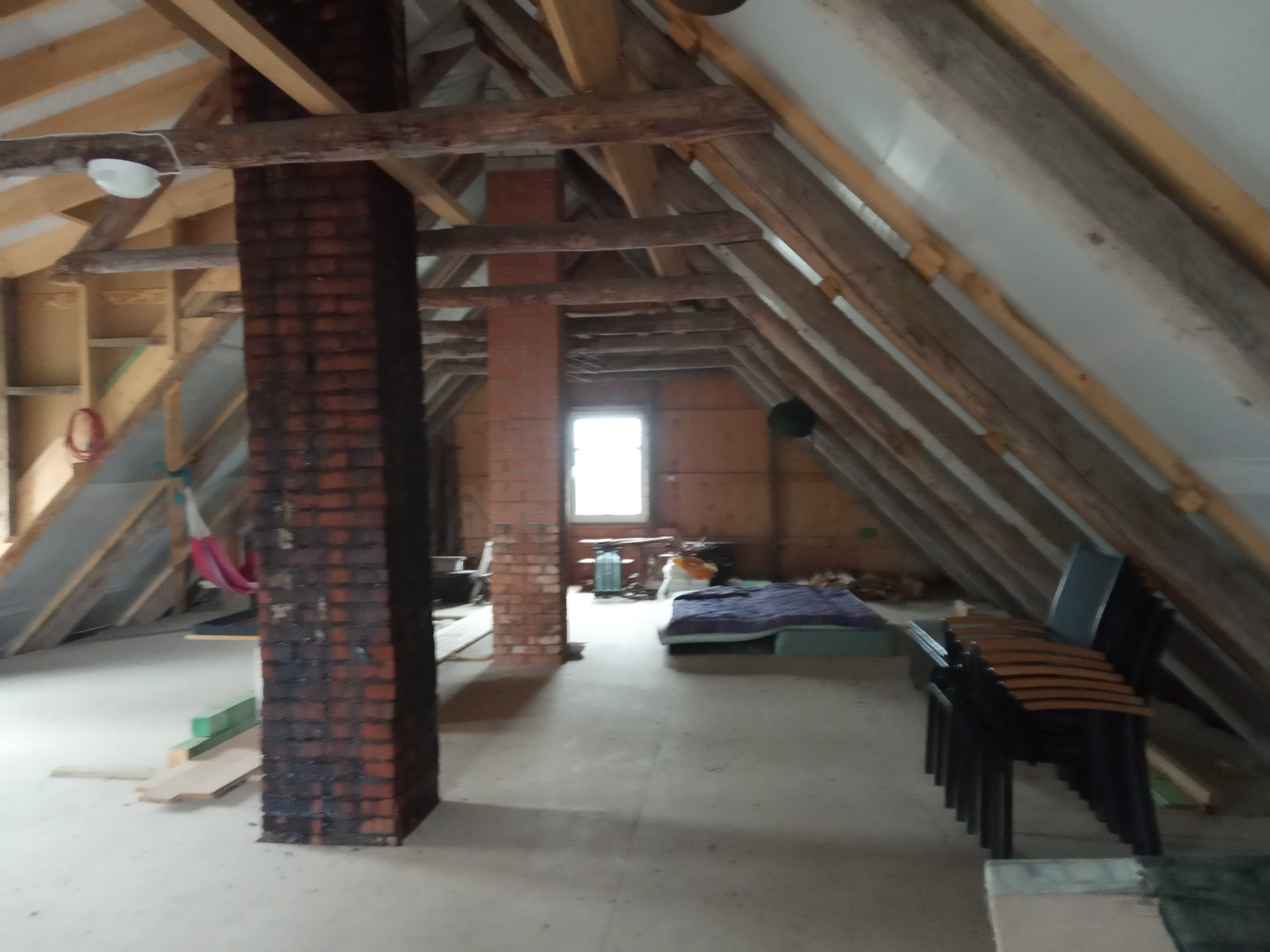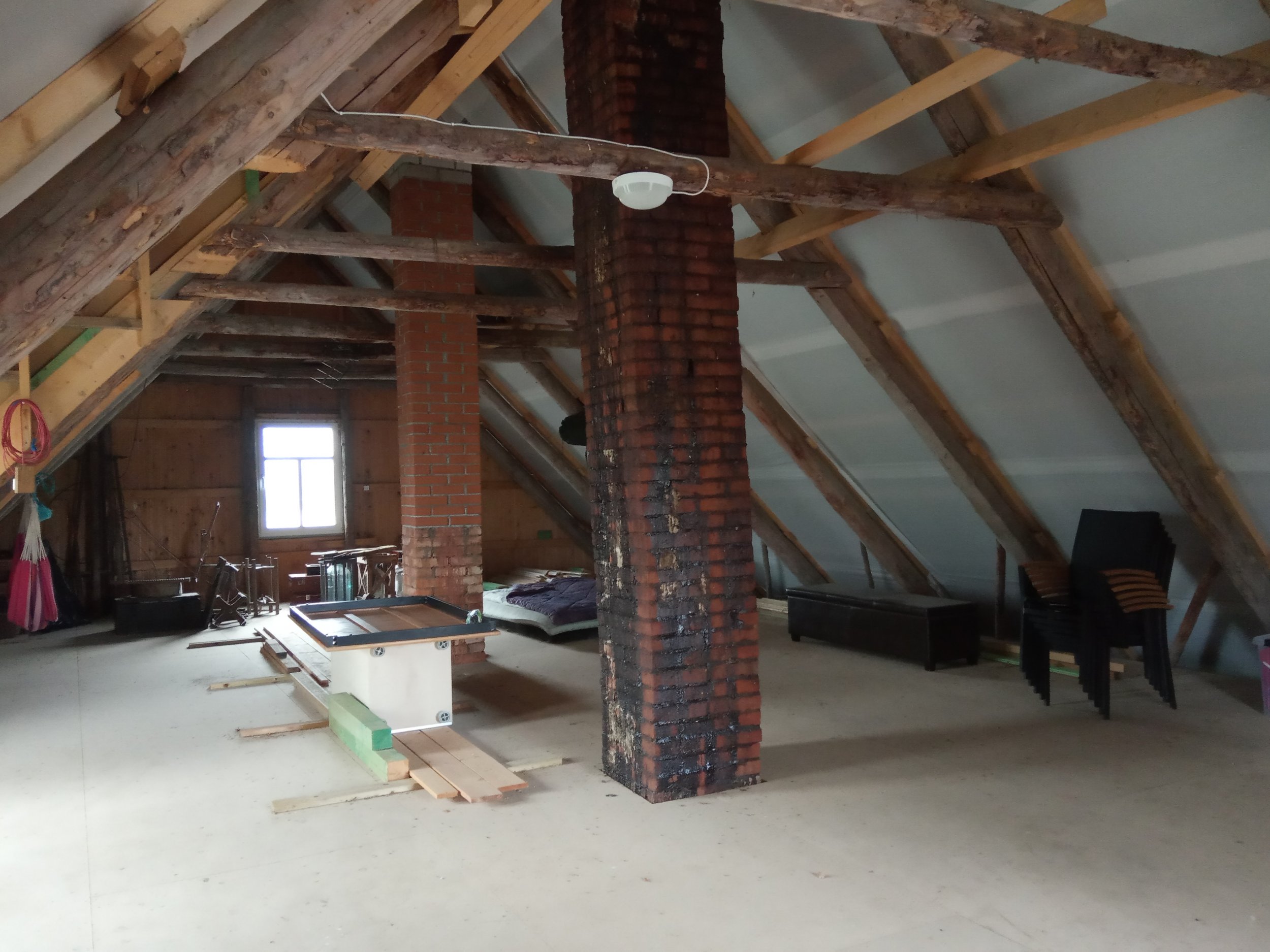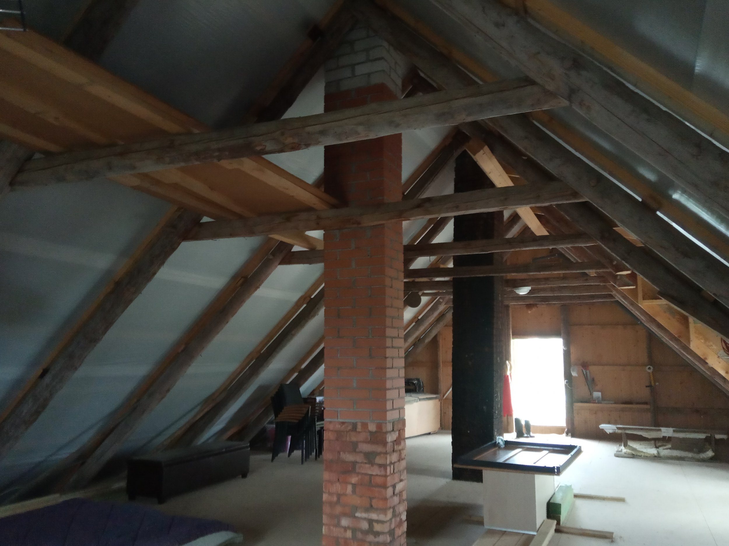 Pööningukorruse katusealuse soojustamine ( tuuletõkkeplaadi paigaldus, vaheprusside paigaldus, villa paigaldus, aurutõkkekile paigaldus), kogu soojustatud pinna roovide loodimine. Katusealust pinda on 135 m2. Otsaseina kõrgus 4,52 m, laius 8m. Hoone pikkus 12,50 m.