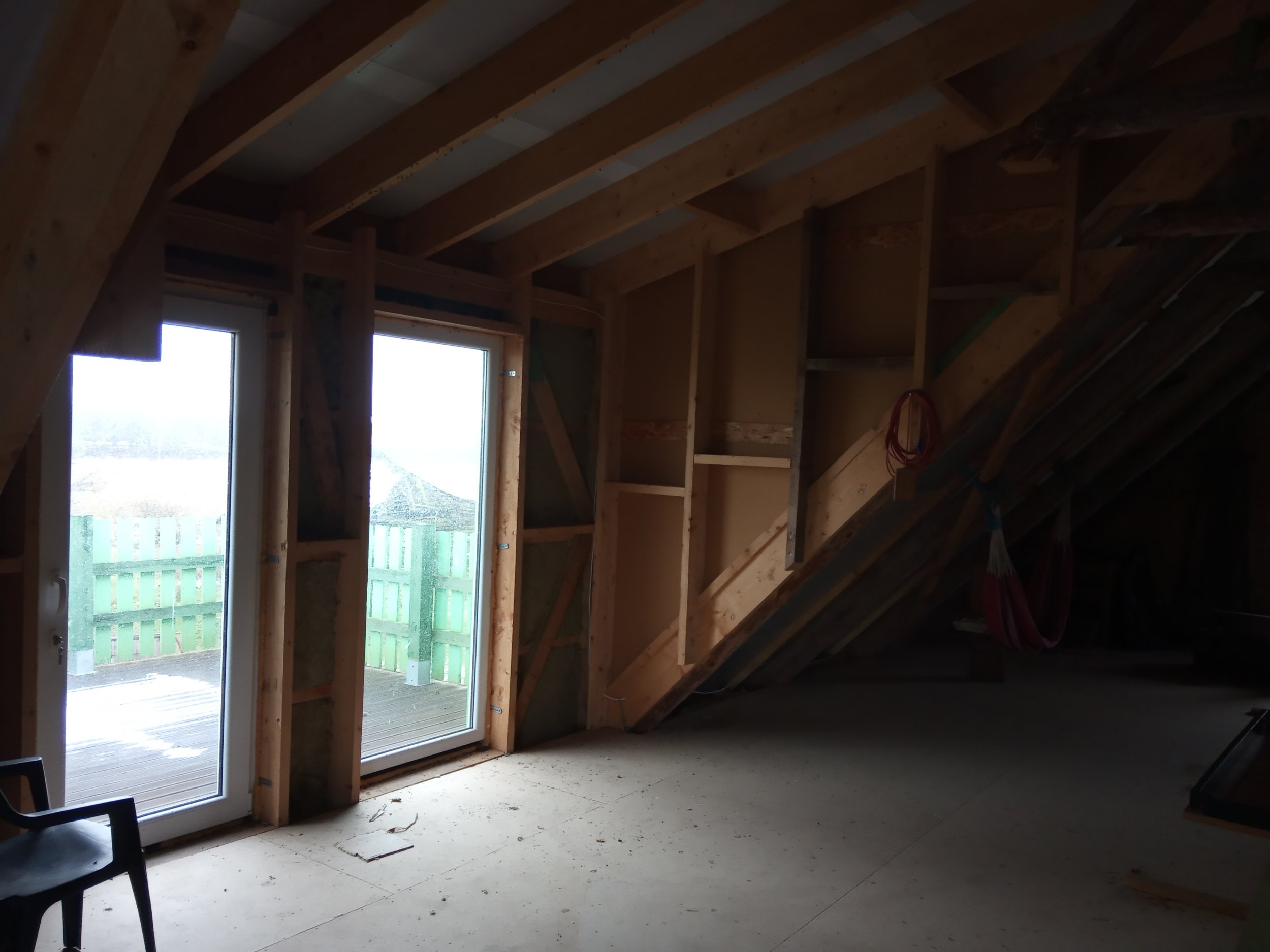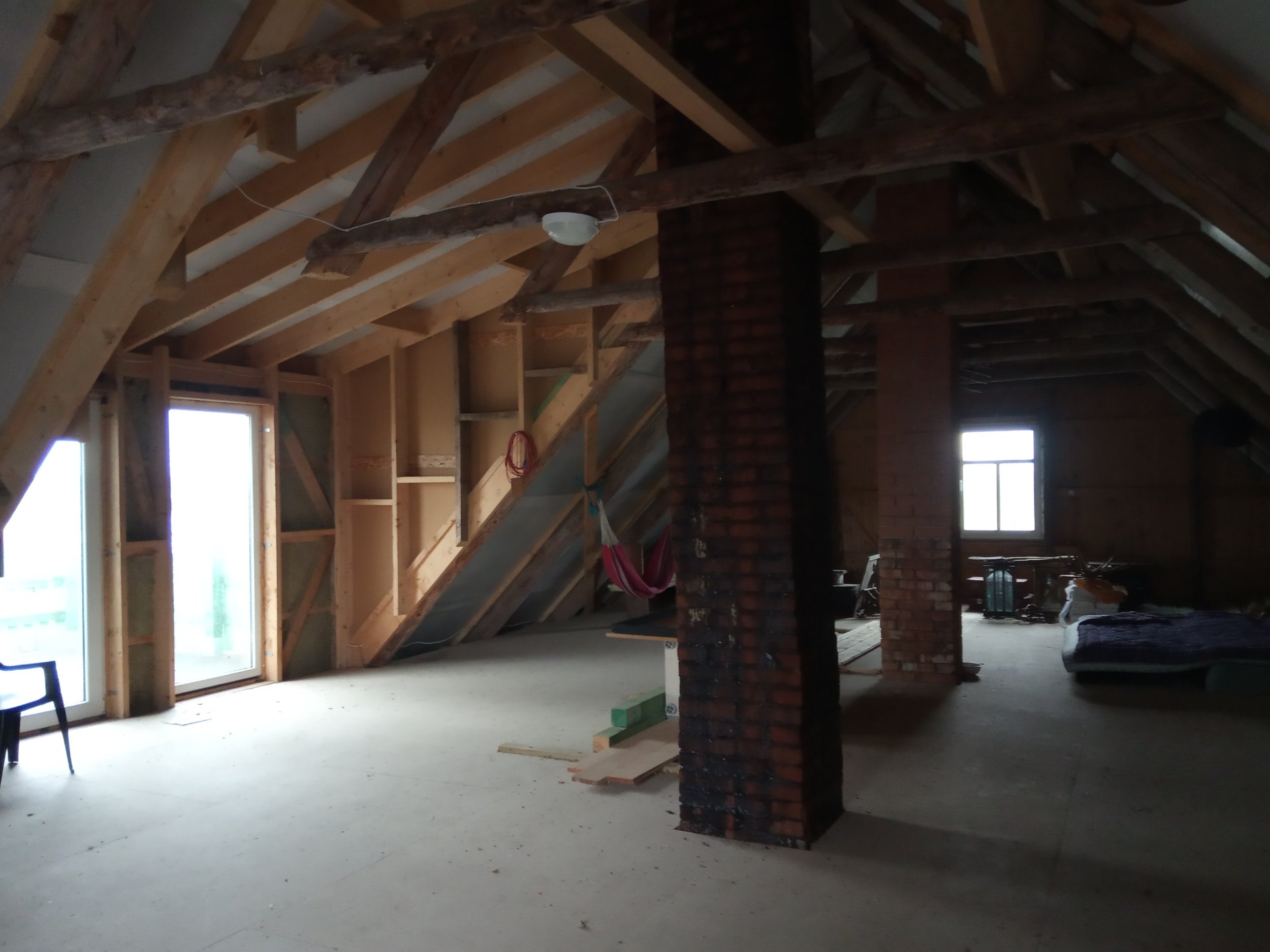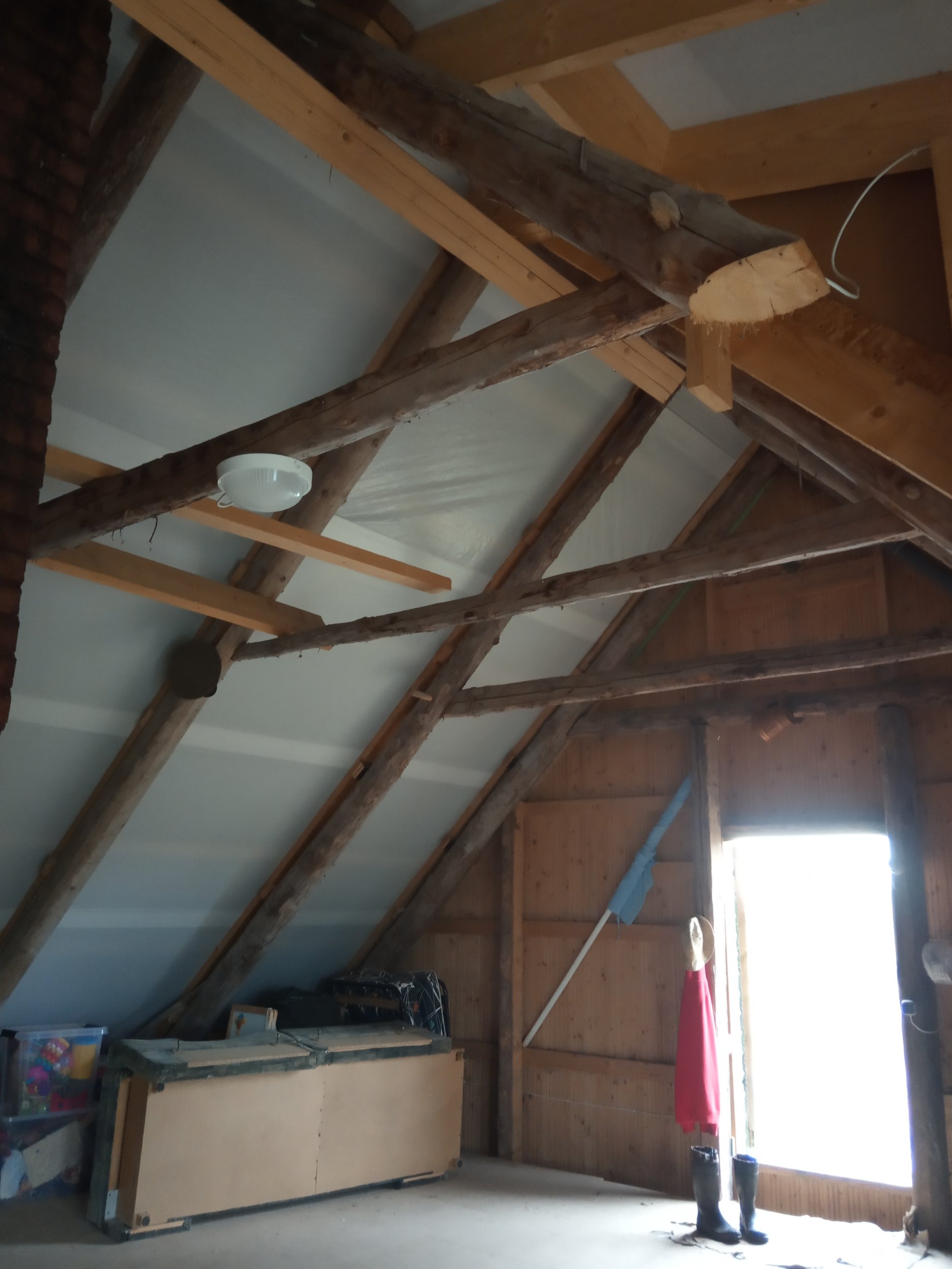 Pööningukorruse katusealuse soojustamine ( tuuletõkkeplaadi paigaldus, vaheprusside paigaldus, villa paigaldus, aurutõkkekile paigaldus), kogu soojustatud pinna roovide loodimine. Katusealust pinda on 135 m2. Otsaseina kõrgus 4,52 m, laius 8m. Hoone pikkus 12,50 m.