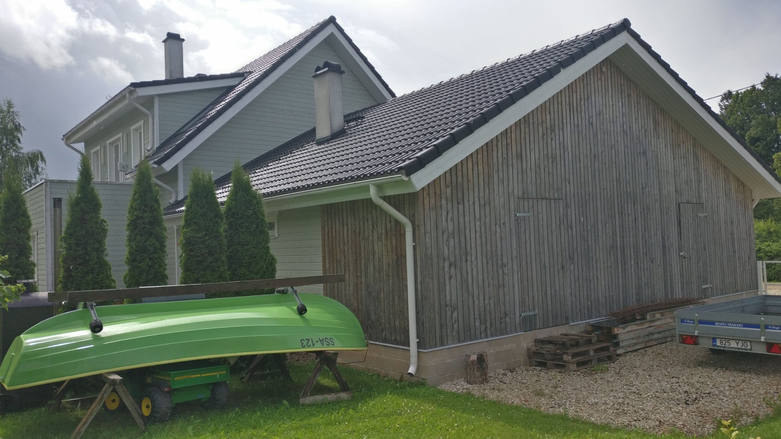 Lõunapoolses küljes ja maja taga olev ilma räästata fassaadi osas on kohati värvi ka lahti koorunud ja valged piirdelauad tahavad vahetamist - pildilt näed et on mustaks tõmmanud.