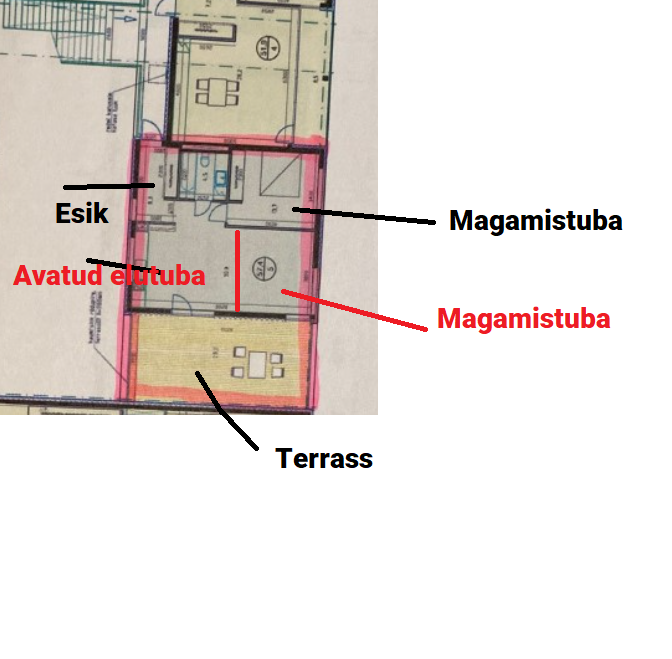 Soovin kahetoalises korteris ühe mittekandva seina lisamisega muuta planeeringut - muuta 3-toaliseks (üldpind korteril 58). Kandvaid/jäigastavaid konstruktsioone ja hoone tehnosüsteeme ei muudeta.