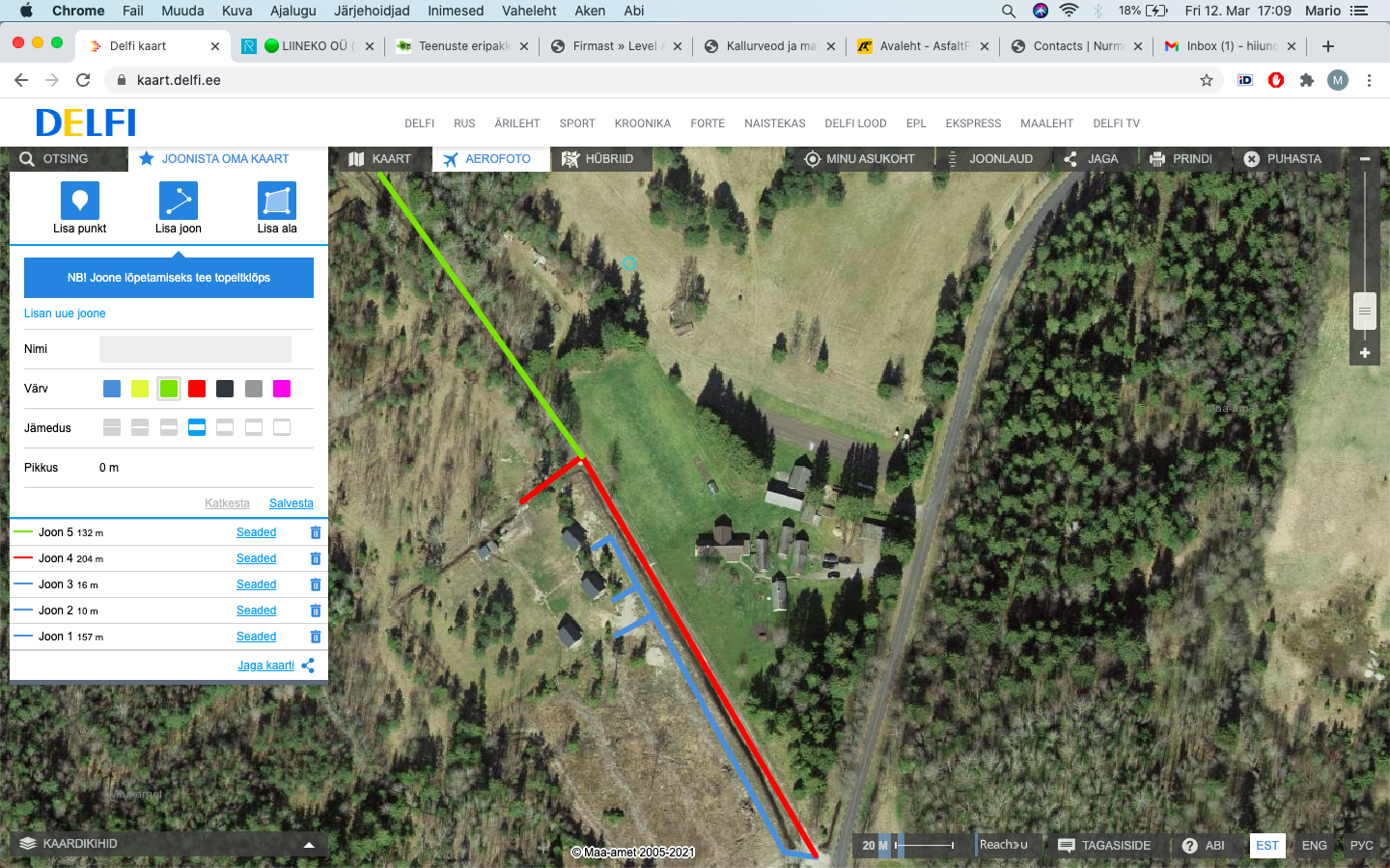 Punane tee - 204m 30cm kruusa + eraldi asfald.