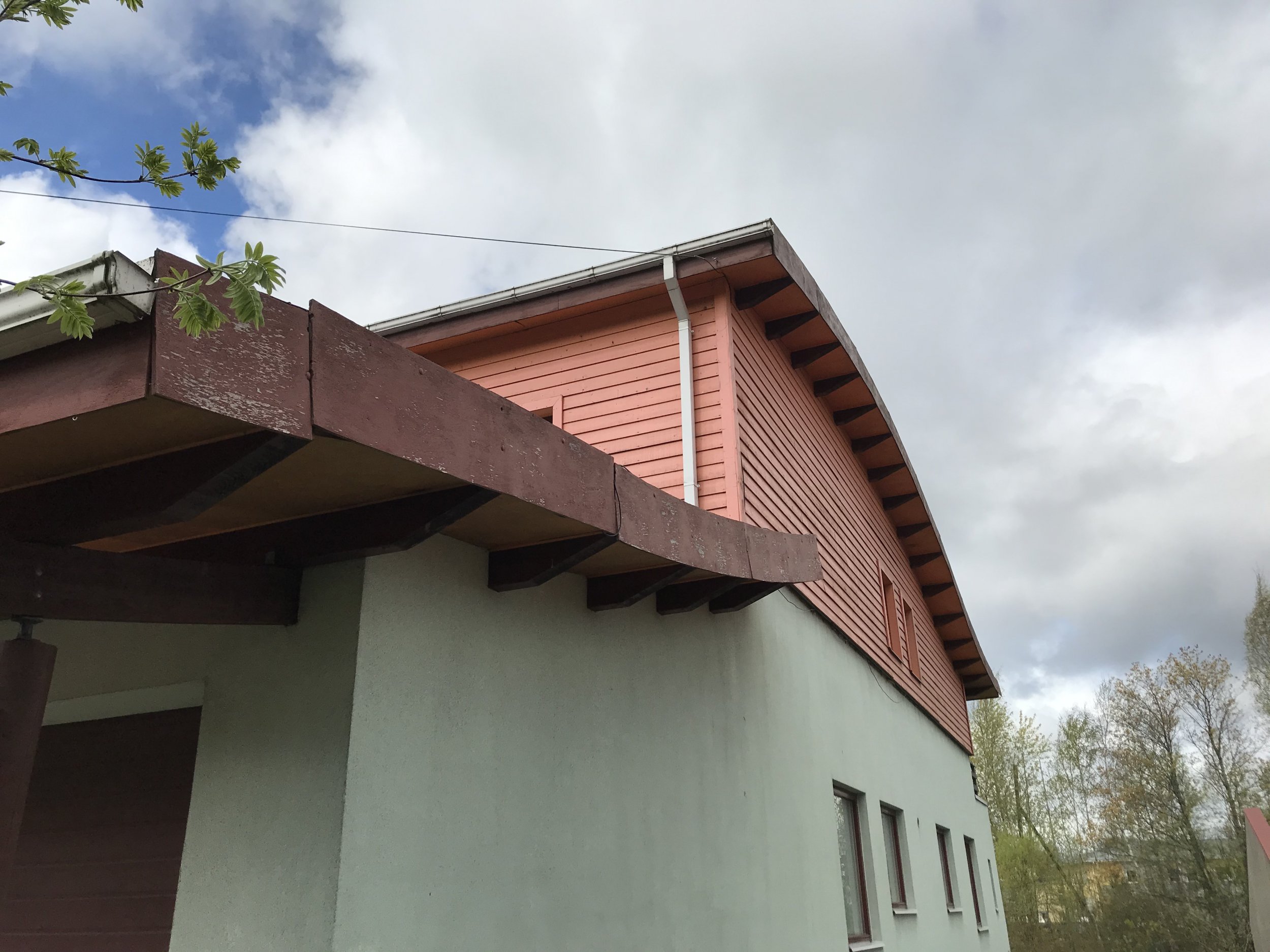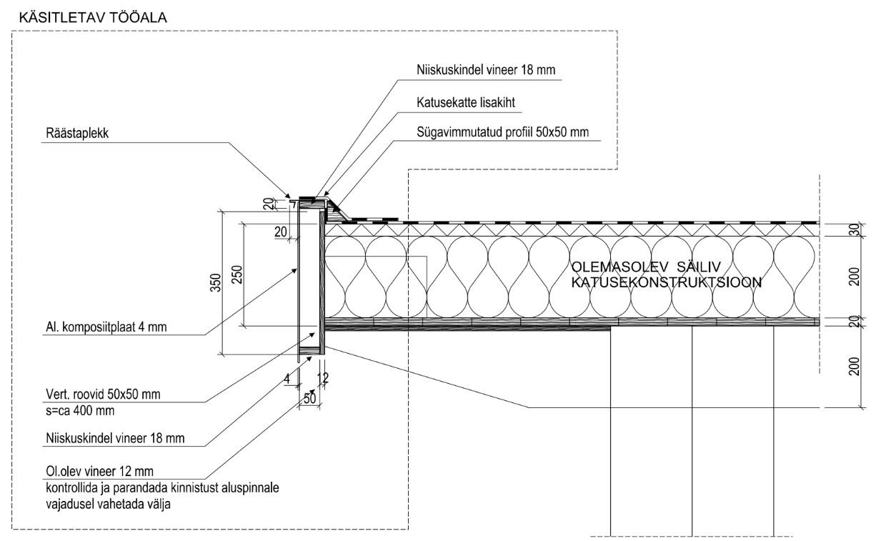 Maja vineerist räästasõlm tuleb asendada komposiitpaneeliga vastavalt joonisele.