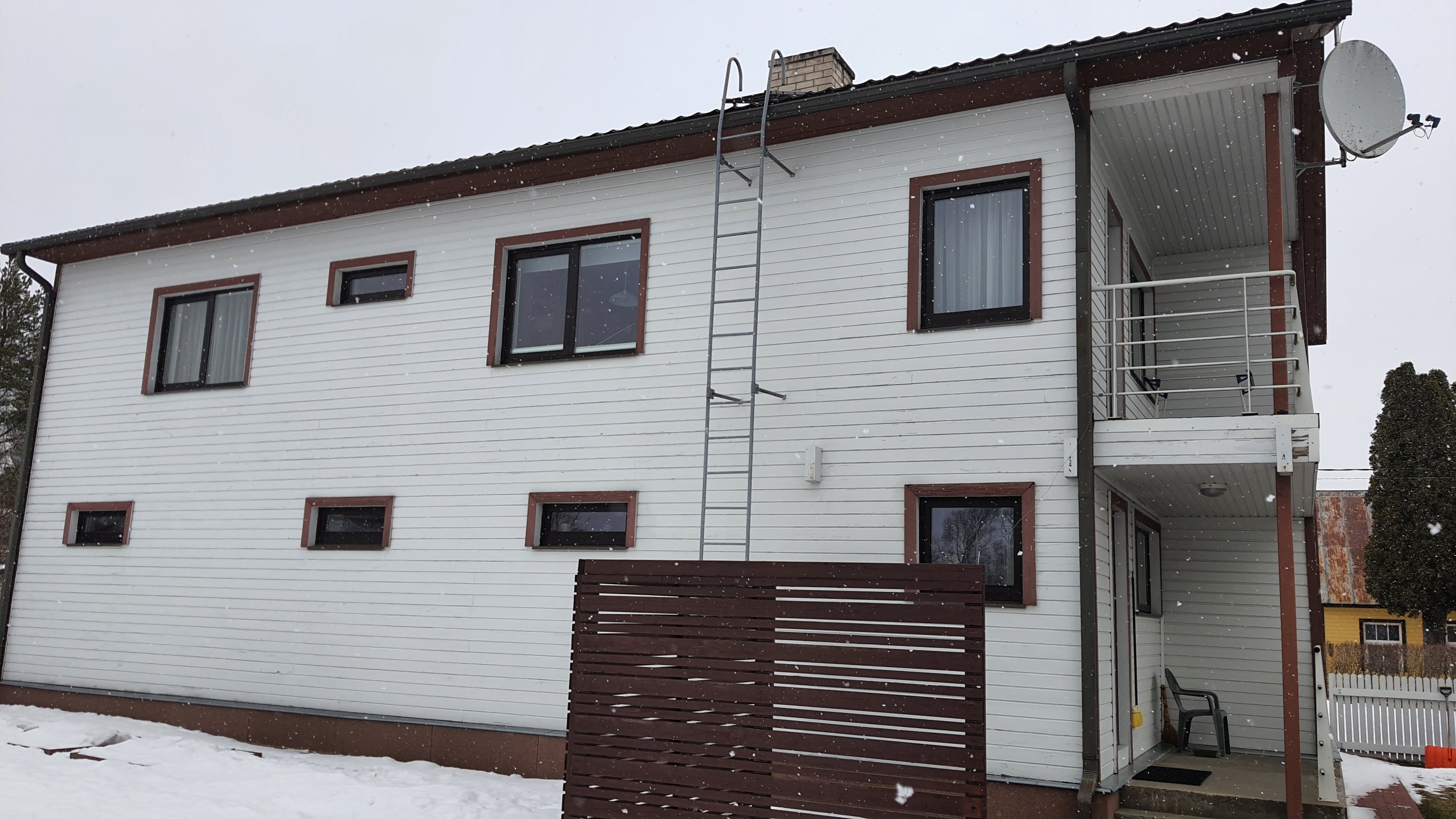 Olemasoleva voodrilaua, roovituse ja soojustuse eemaldamine ca 260m2. Materjalid ladustatakse maja ette sorteerituna, vill prügikottidesse. Vajadusel seina aluspinna puhastus ja tühimike täitmine. Fassaadi soojustamine IsoverKL31 50mm+50mm. Esimene kiht pannakse vertikaalselt puitrooviga 48x48mm ja teine kiht horisontaalselt puitrooviga 48x48mm. Puitroovi lõigatud otsad immutatakse kohapeal. Akende/uste lisasoojustamine, juhul kui selgub lahtivõtmise käigus, et seda on vaja teha. Tuuletõkkekipsi Gyproc GTS paigaldus, liitekohad teibitakse. Paigaldusliistude ja Marmoroc Baltic fassaadikivi 111 paigaldus. Teise korruse rõdu põranda katmine pruuni ruberodiga ca 8m2. 3 metallposti värvimine pruuniks ca 7m. Akna- ja ukseplekkide paigaldus. Vana soklipleki eemaldus ja uue paigaldus. Vihmavee torude eemaldamine ja uute paigaldus. Tuulekasti värvimine. Rõdupiirete mõõtu lõikamine.Rõdude ja sissepääsu laed kaetakse Tempsi plaadiga ca 20m2. Lipuvarda kinnitamine Narva plokki. Postkasti ja valgustite tagasi panek fassaadile. Materjalid tulevad tellijalt. Kõik tööd tulevad teostada vastavalt paigaldusjuhenditele.