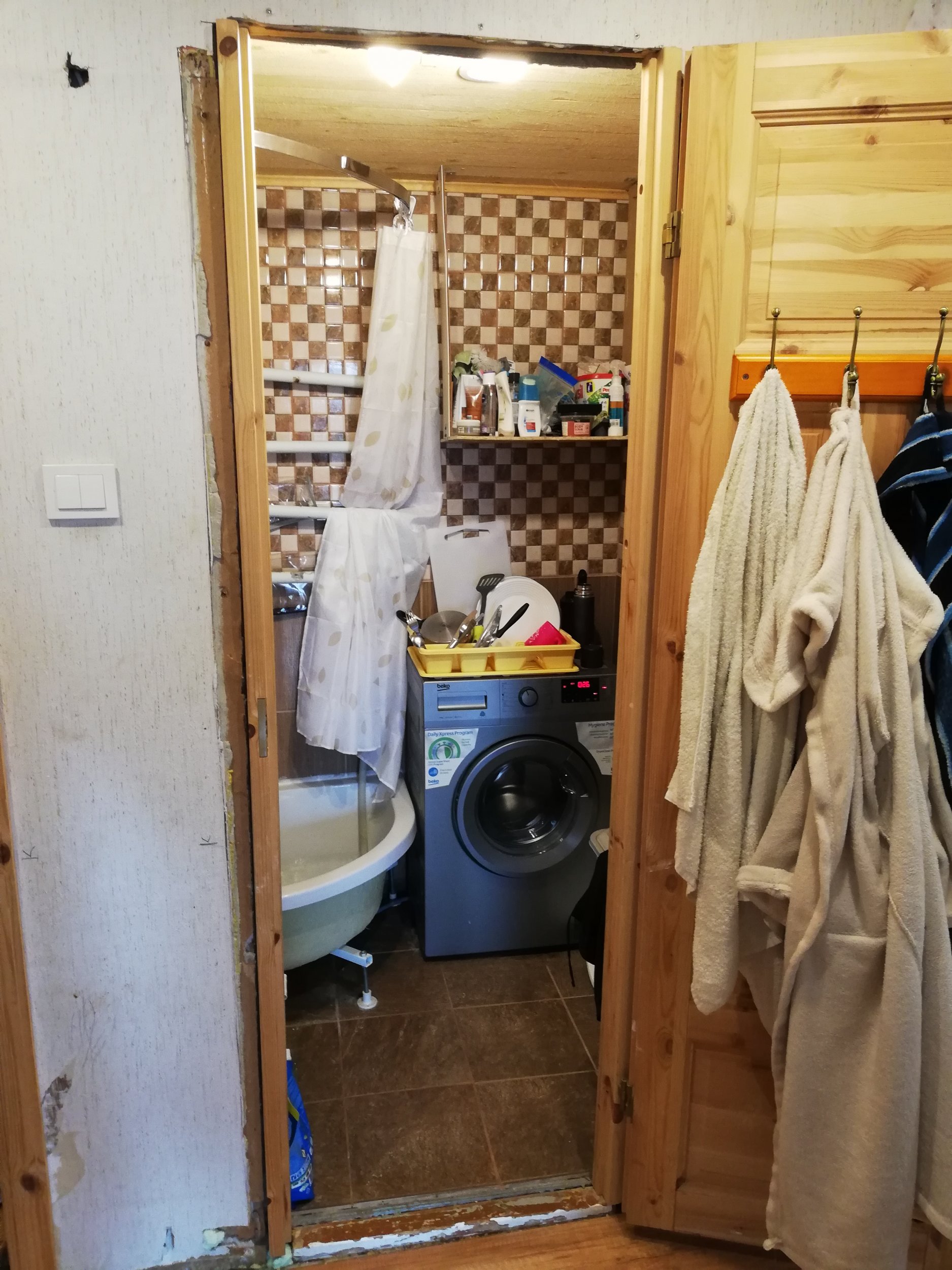WC ja vannitoa lammutamine ning tagasi ehitamine ühe ruumina. Lammutada tualeti ja vannitoa vaheline sein. Kahe ukse asemele jääb lõpptulemusena 1. Torutööd, soov on liigutada dušši asukohta. Tekitada köögi ja vannitoa vahele lisa veesulgemis kraan. Plaatimine. Vähesel määral elektritööd, vajadusel uue kaabli vedamine. Vanade küljeseinte lammutamine ja uute seinade kokku ehitamine olemasoleva sinakat tooni otsaseinaga. Ise võin ehitusjäätmed kogumispunkti viia ning korterist välja tassida.