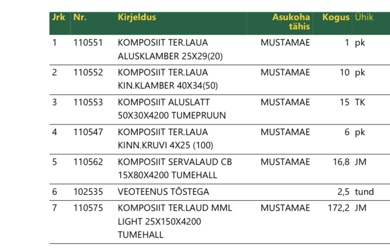 Meie hinnapakkumine terrassi püstitusele Hinnas vaid töötasu ja kütusekulu. Kõik materjalid tellija poolt. Vajadusel ostame puudujäävad komponendid ning tasumine tseki alusel. Lugupidamisega! |