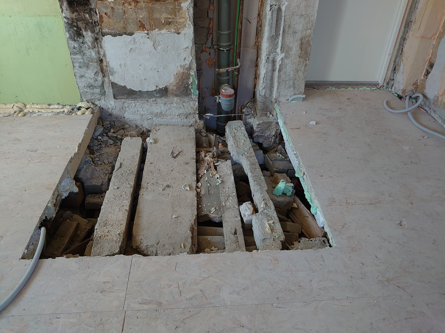 - Vannitoa põranda ehitus (kergkruus, EPS, betoon, hüdroisolatsioon, põrandaküte, plaadid)