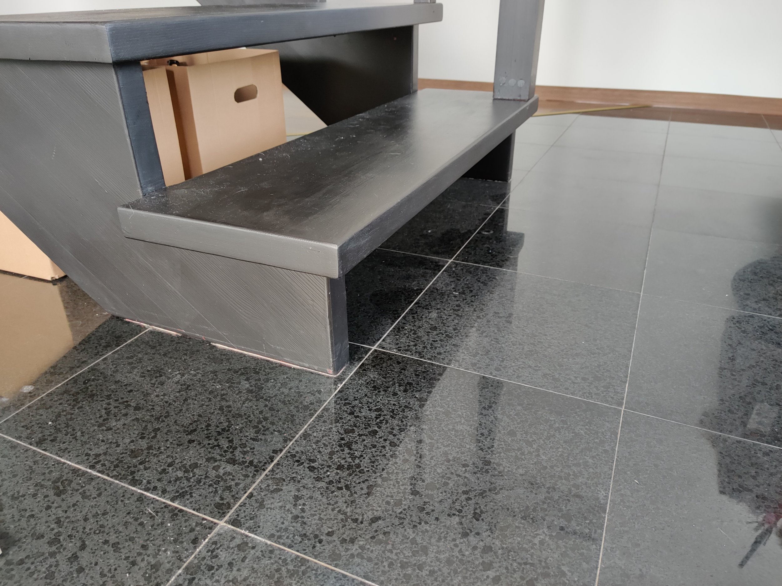Vanad plaadid üles võtta. Põrandal on põrandaküte. Plaatidele toetub puidust trepp (pilt kaasas).