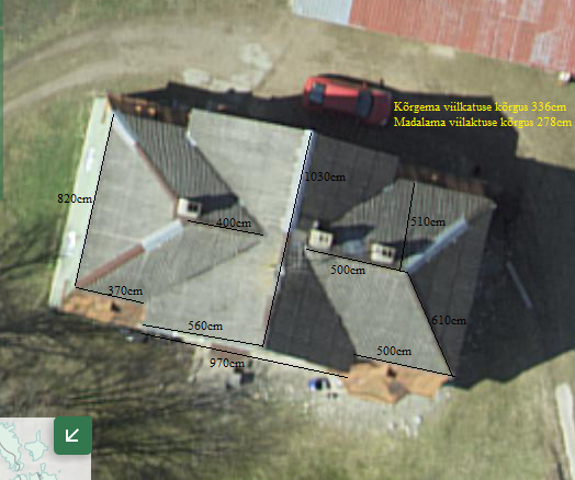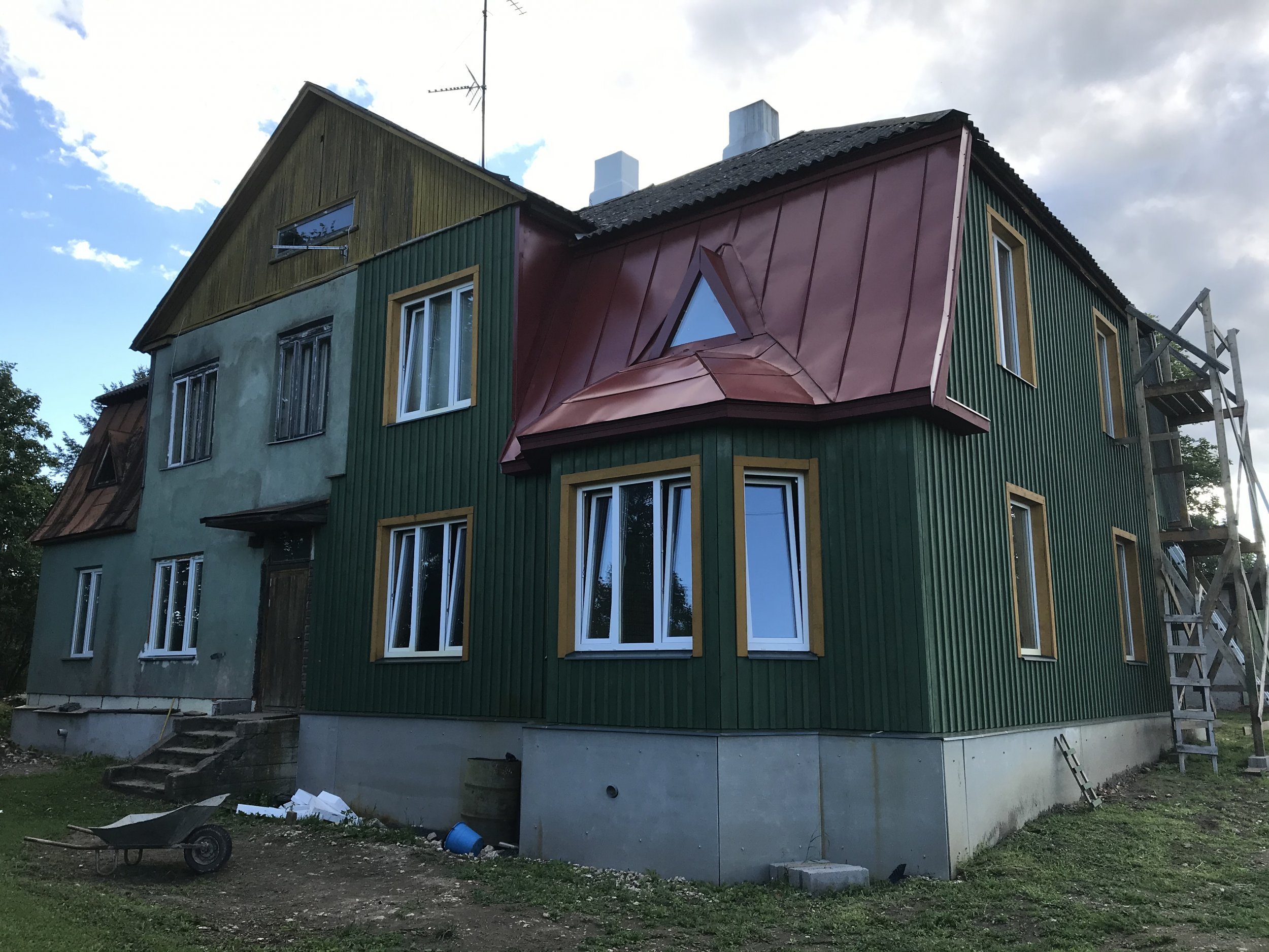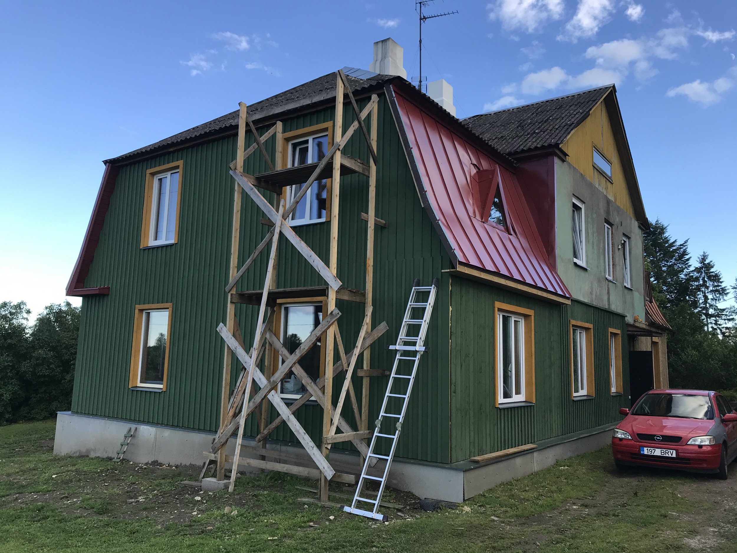 Vana katus maha - plekk ja eterniit. Uus katus asemele - kivikatus. Vaja ka lisa sarikaid, kuna sarikate vahe on kuni 1,2m. Katuse vahetuse alla ei kuulu need 4 katuse osa, milles on kolmnurkaken. Öömaja vajadusel olemas.