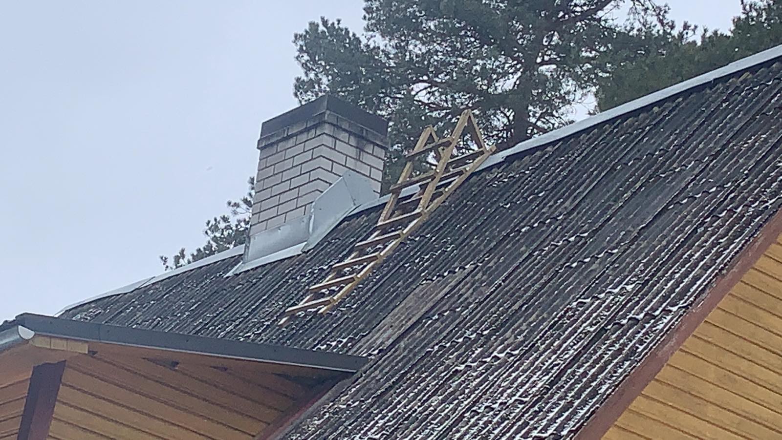 103m2 vanaeterniidi kattuse vahetus. Vana eterniiti all on veneaegna Dranka mis jattame alles. Leedu uus eterniit on juba olemas, abiks 12m redel. Windskappid juba tehtud. Vana kattuse utiliseerimine ei ole vaja