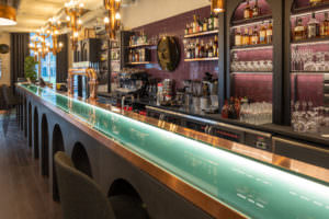 Ülemine leti äär, kus saab klient toetuda ja juua võiks olla kas 1 klaasiga ja valgustega lahendus või siis puidust tasapind või kivilaadne. Lisan mõlemast variandist ühe pildi võõra koha letist juurde. Ja leti äär tuleks servamatalauast, servamatalaua tarnime ise kohale.