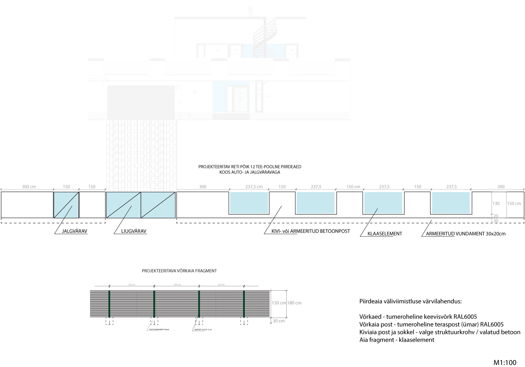 Krundi küljed (74 + 84 m) vaja teha võrkaiaga. Võrkaia postide tarbeks on iga 2,5 m tagant augud ette tehtud.
