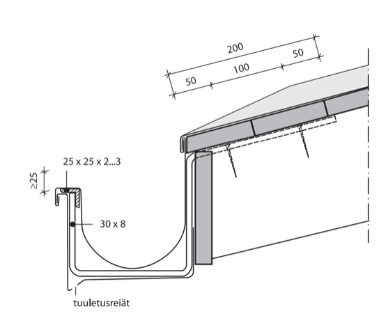Mõlemasse otsa otsa paigaldada vihmaveetoru ca H 3,0 m. Katusepind on 125 m2.