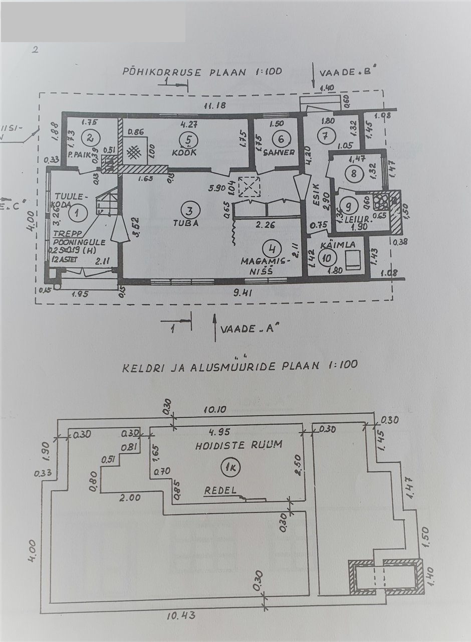 Keldrirajamis sügavus 2,1m ja lintvundament 1,2m, kruusapadjal, kiht 30cm.