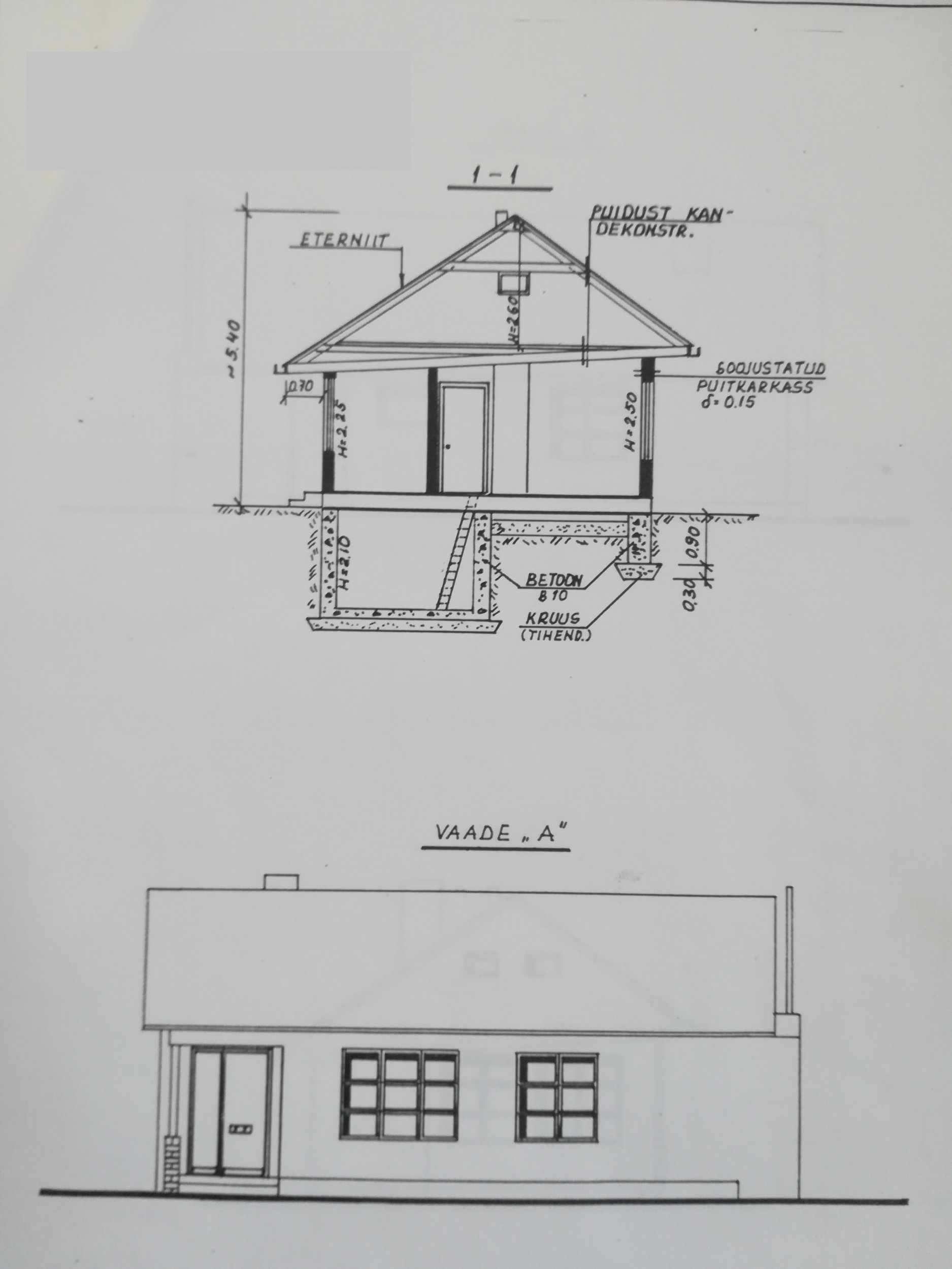 Laed: puitlagedel min.vatt soojustusega, keldri lagi raudbetoonist M-200. Katus: viilkatus, kaetud eterniidiga.