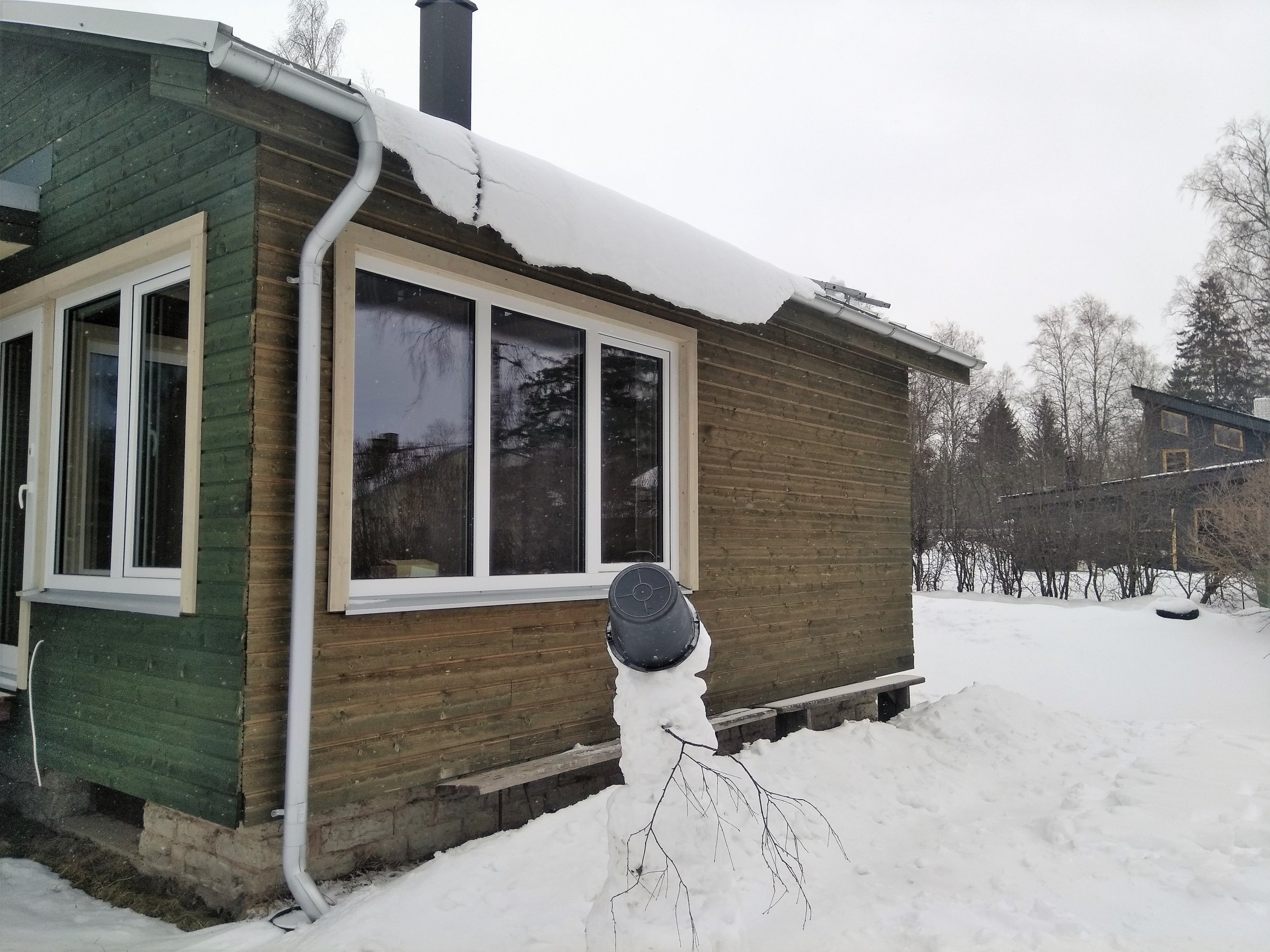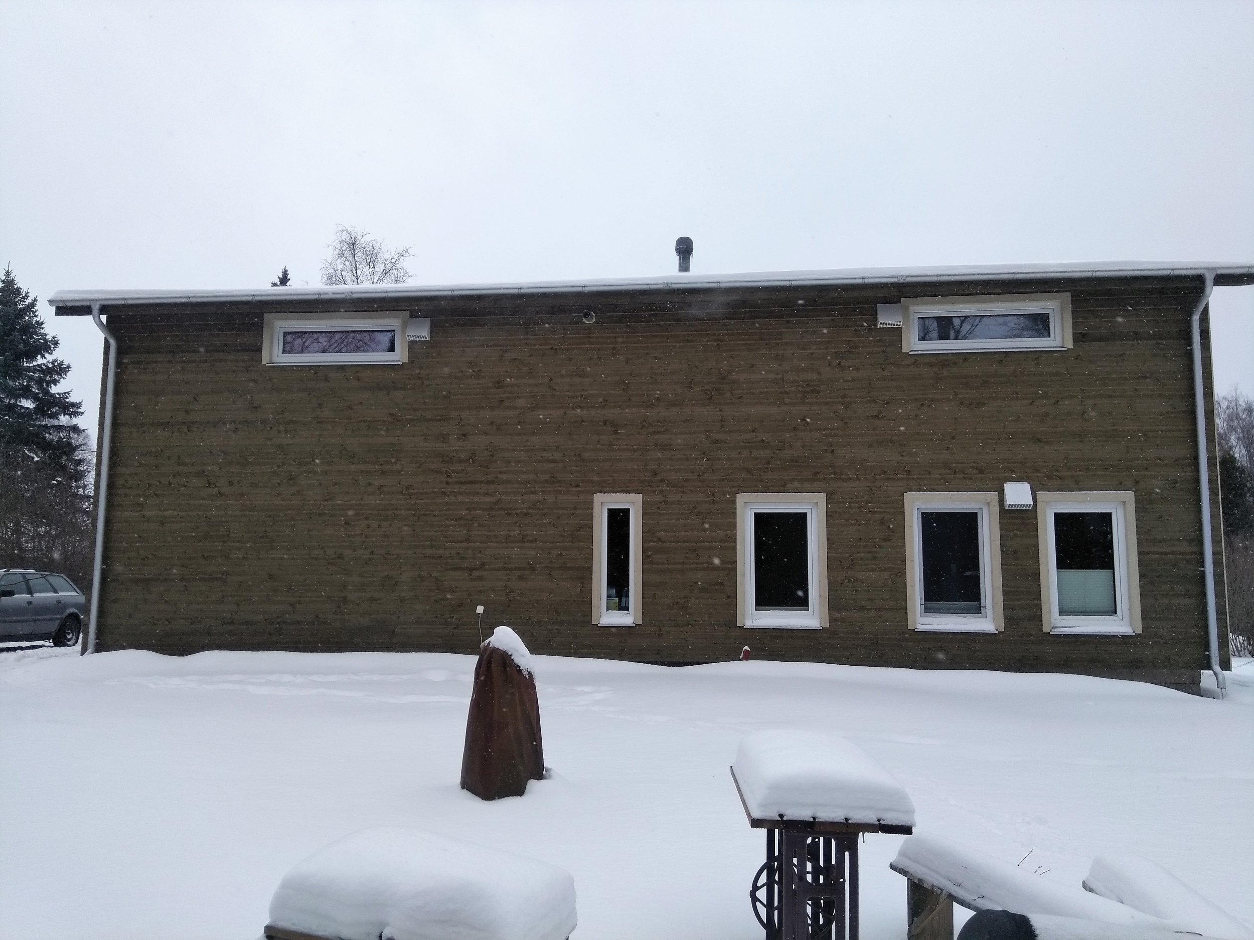 Fassaad ja tuulekastid oleks vaja 2 korda üle värvida Tikkurila Pinja Wood Stain TVT 5066 värviga.