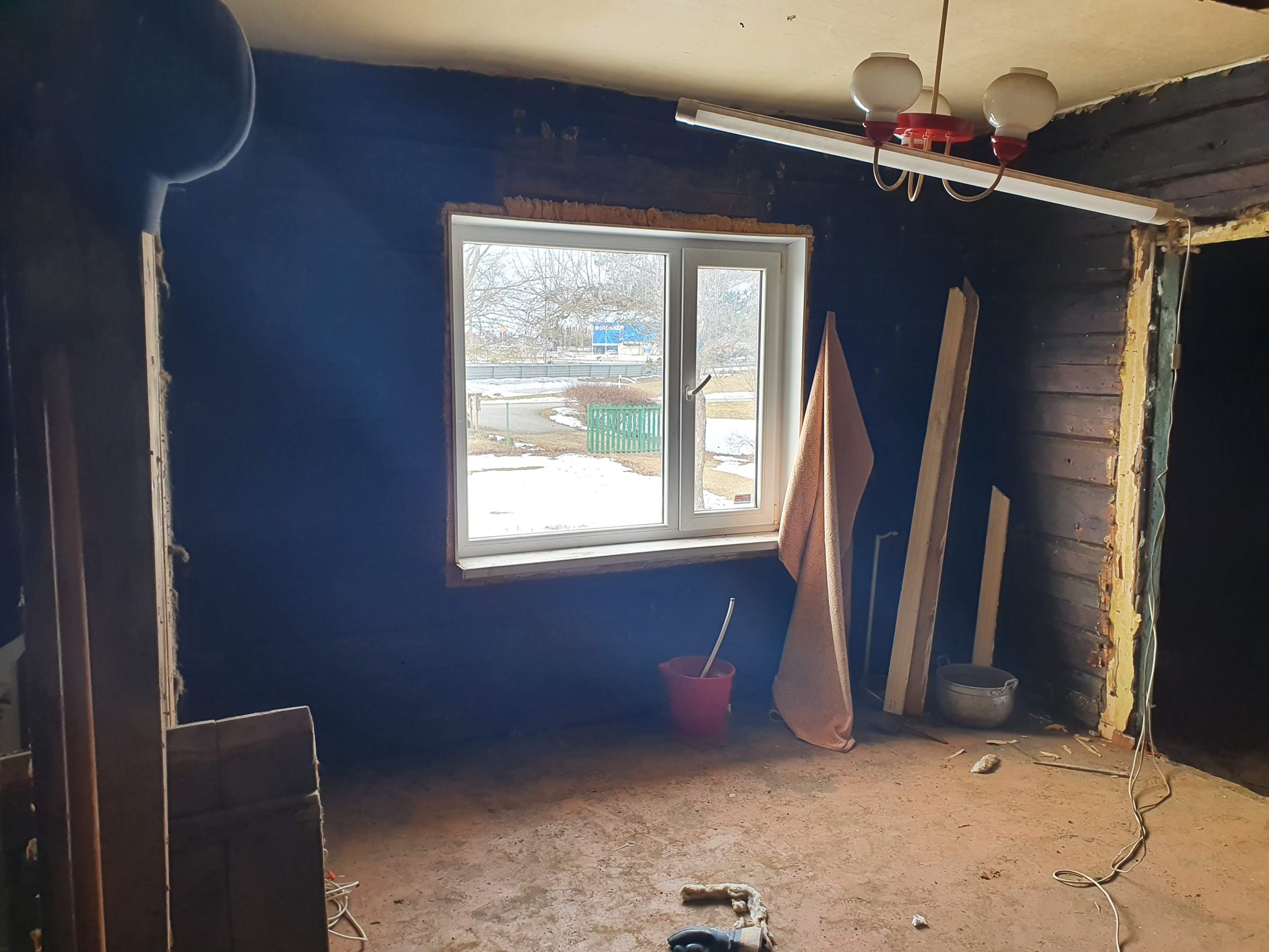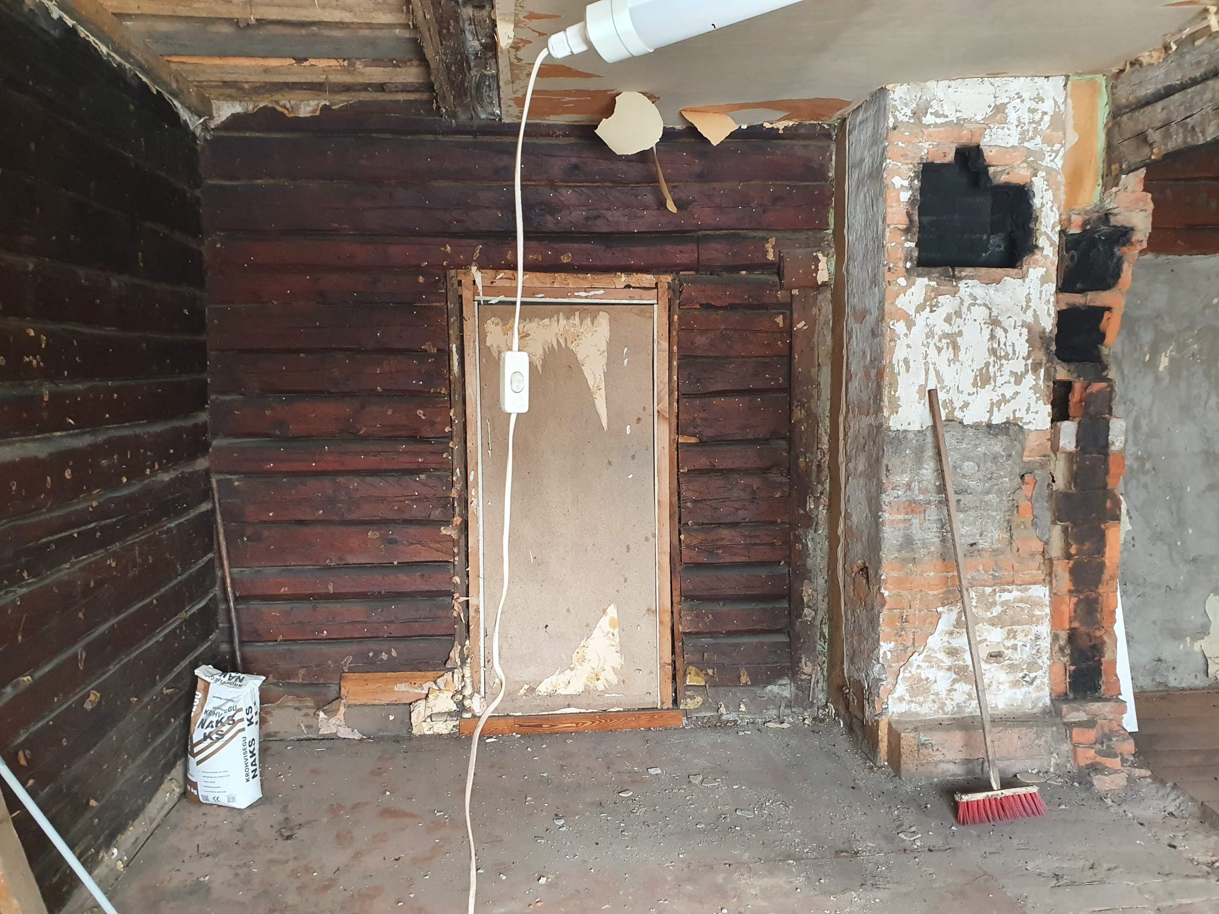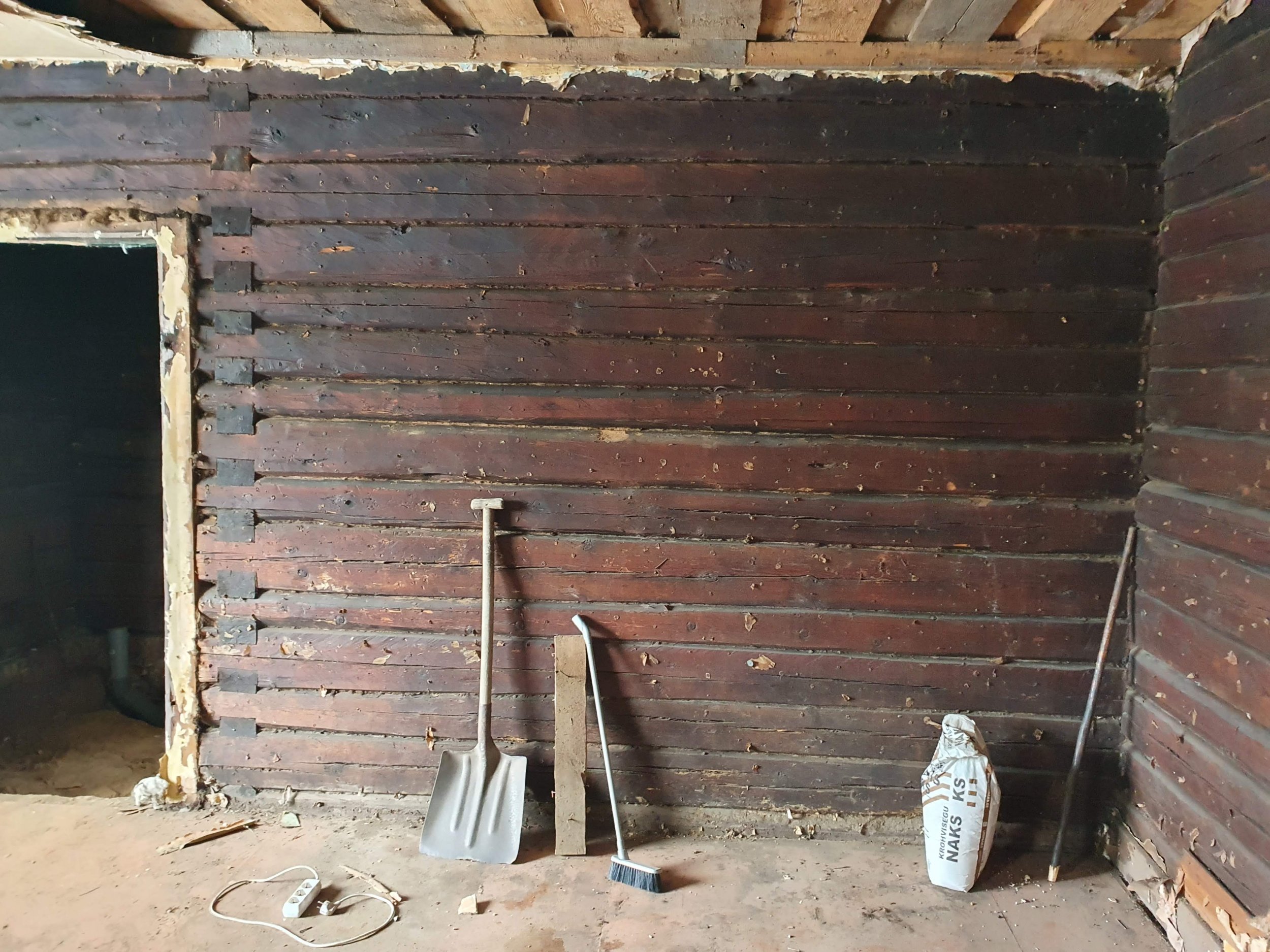 Eramu ühe toa renoveerimistööd. Tegemist on palkmajas asuva toaga, mis on palkideni paljaks võetud, toast on välja kistud vana elektrijuhtmestik.