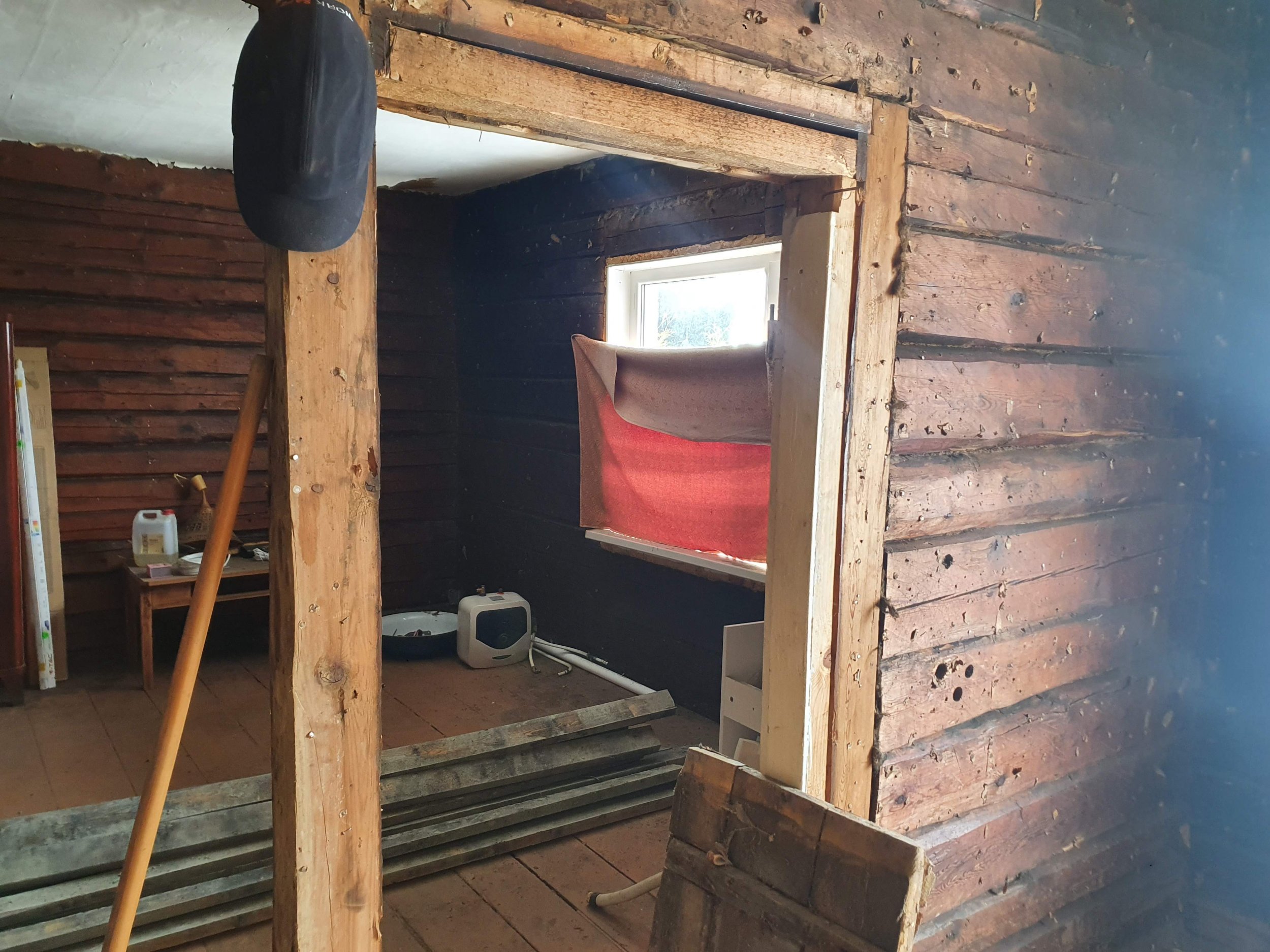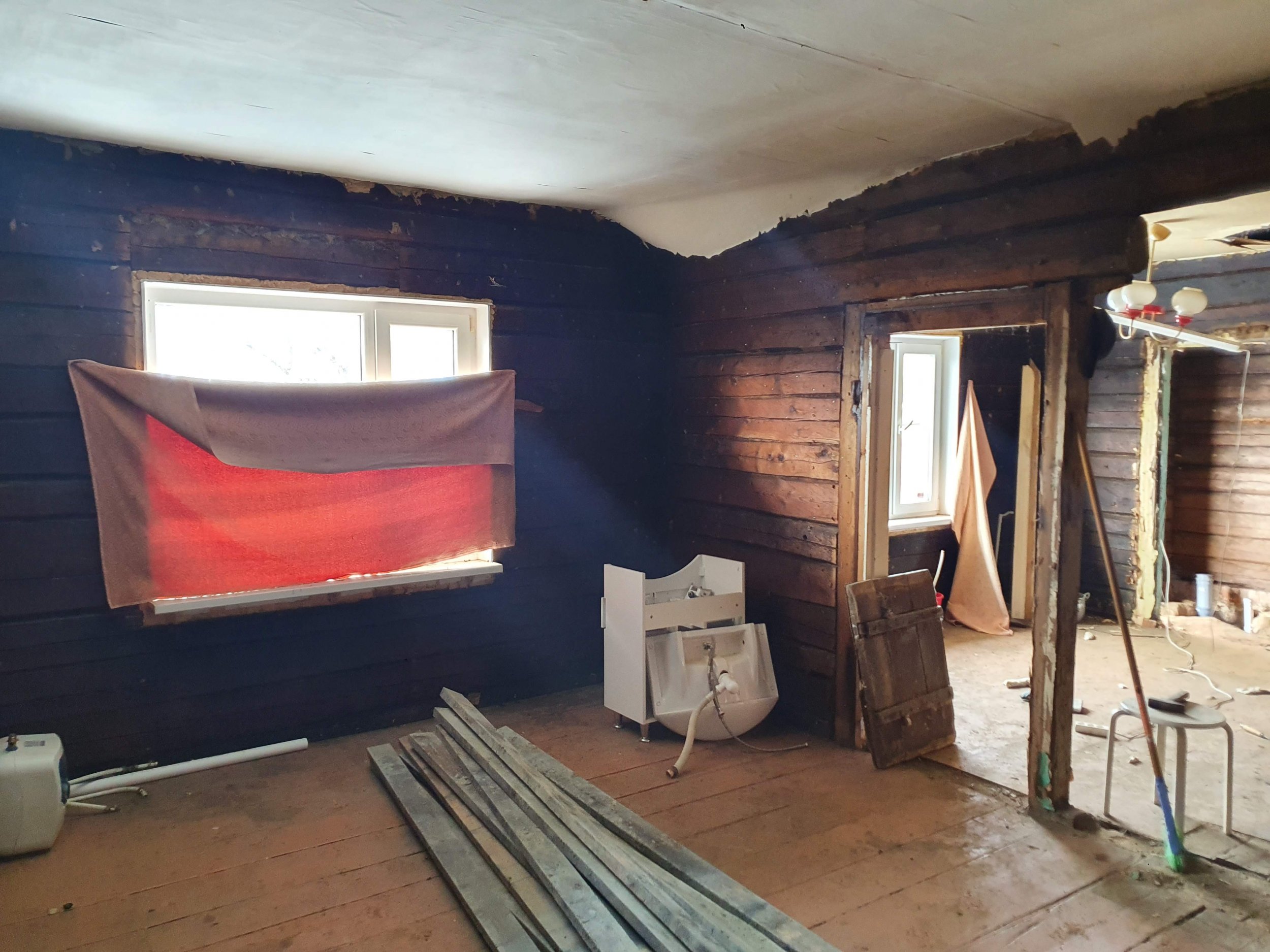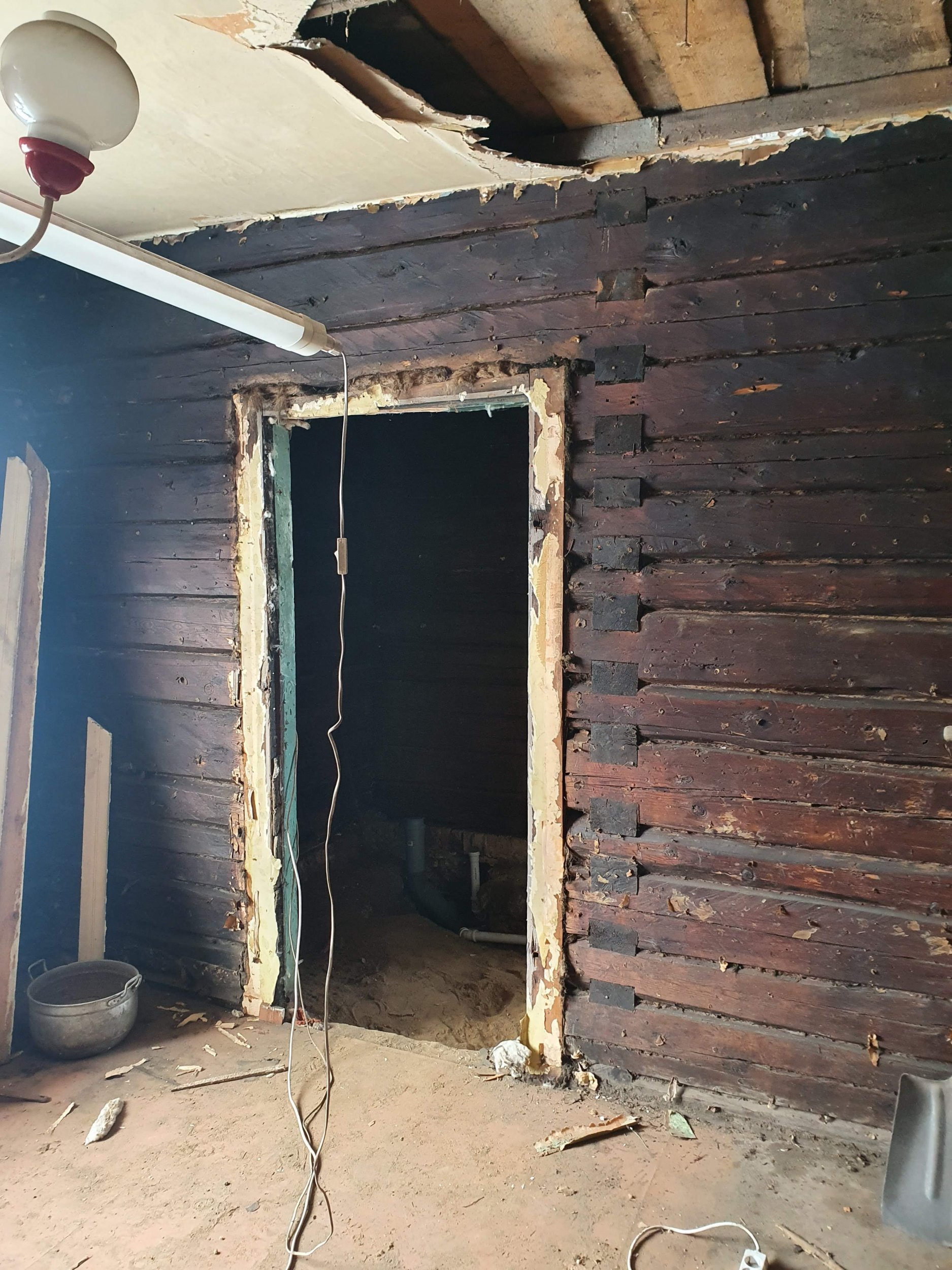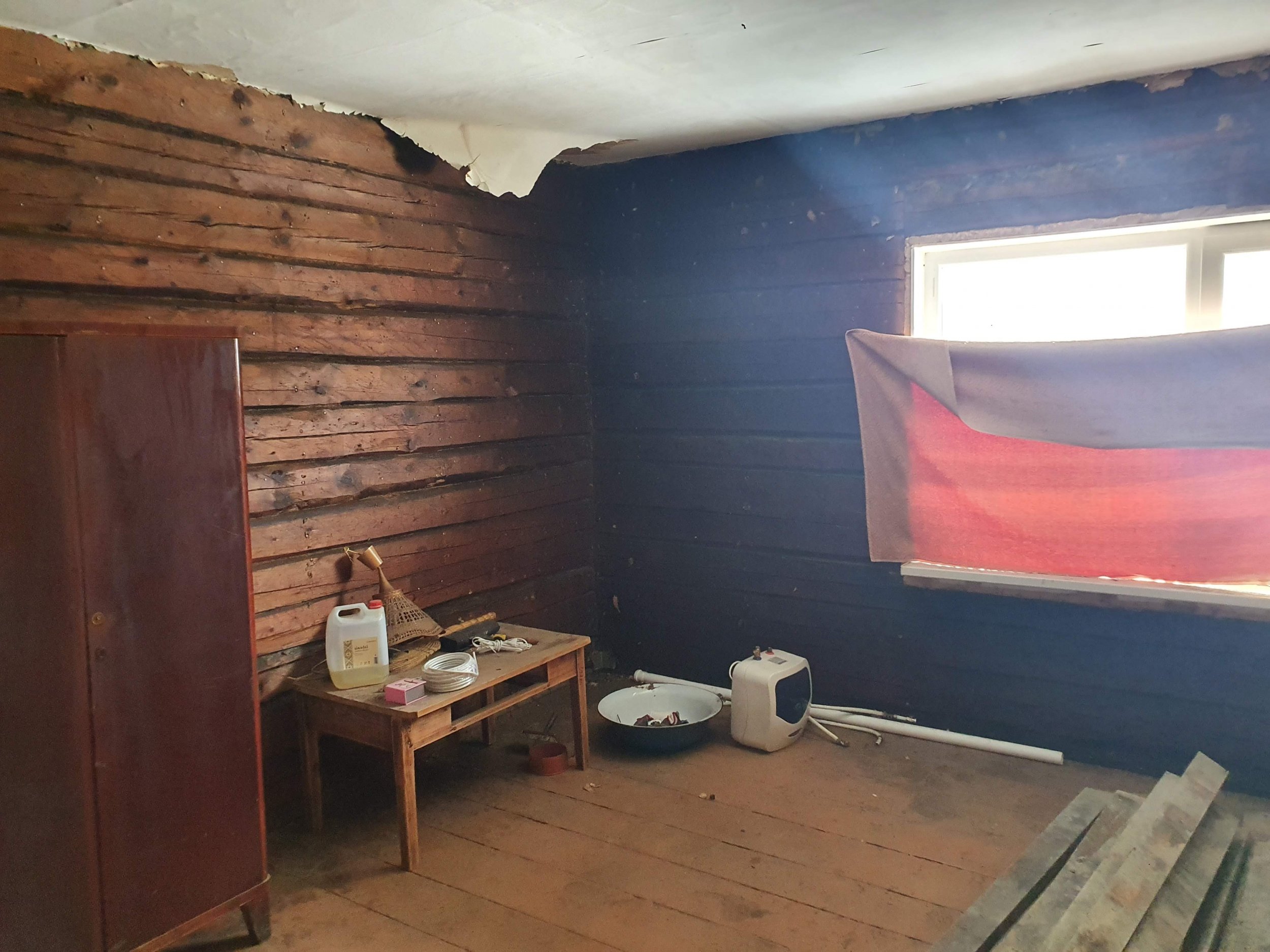 Eramu ühe toa renoveerimistööd. Tegemist on palkmajas asuva toaga, mis on palkideni paljaks võetud, toast on välja kistud vana elektrijuhtmestik.