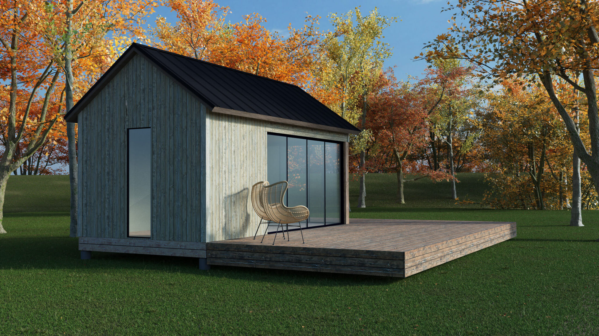 Puitmaterjalist suvemaja (lubatud max 20 m2) ehitus ilma vundamendita koos puitterrassiga (10 m2).