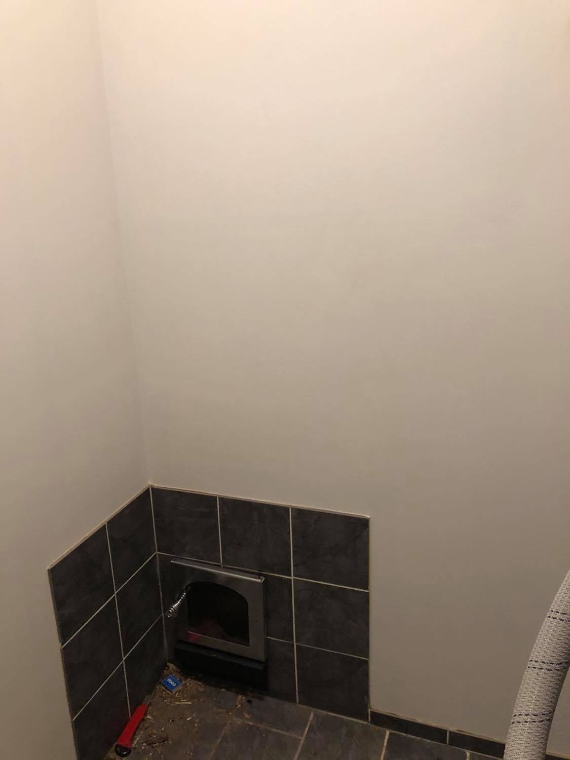 Sauna leiliruumi ja abiköögi vahelise seina lammutamine ja uue ehitamine eesmärgiga vabaneda korstna slepest ja teha saunaahju väljaviik otse korstnasse. Tööga kaasneb olemasoleva korstnaava (fibokorsten) sulgemine ja uue ava tekitamine. Seina viimistlemine ühelt poolt värvimiskõlbulikuks.
