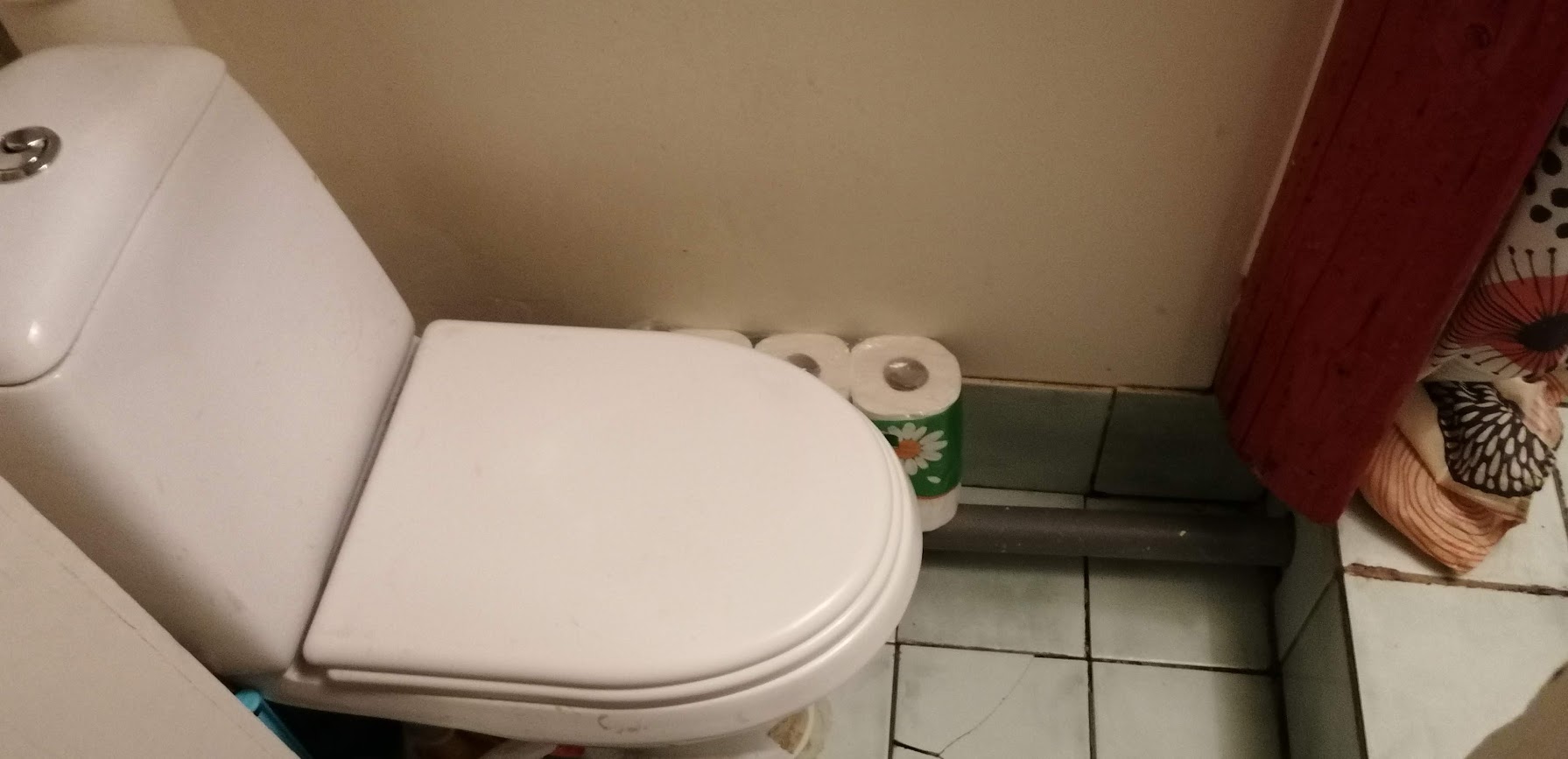 Tegemist on Tartus asuva vana puitmaja teise korruse väikese WC/duširuumiga, mille mõõdud kokku on pikkus: 190 ja laius 63 cm. Dušinurga osa sellest ruumist moodustab ca 90 X 63 cm (piltidel plaaditud osa).
