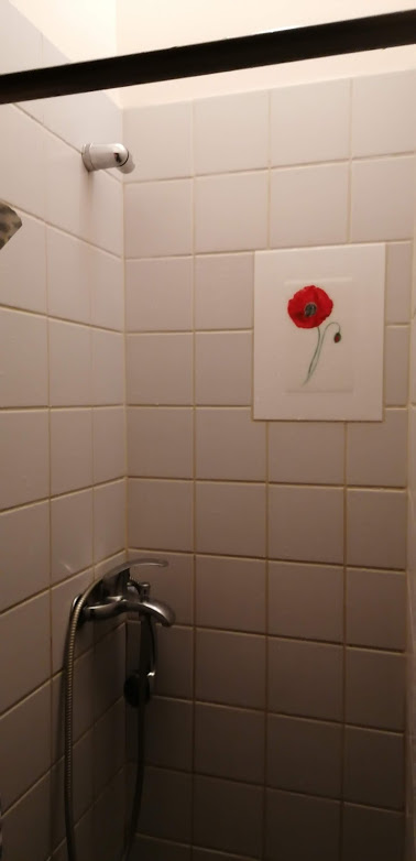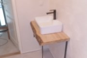6. Eemaldada dušinurgas olev punane puidust post. Ei tohiks olla kandva funktsiooniga, on juba alt läbisaetud. Posti asukohale seinale peaks paigaldama väikese kraanikausi