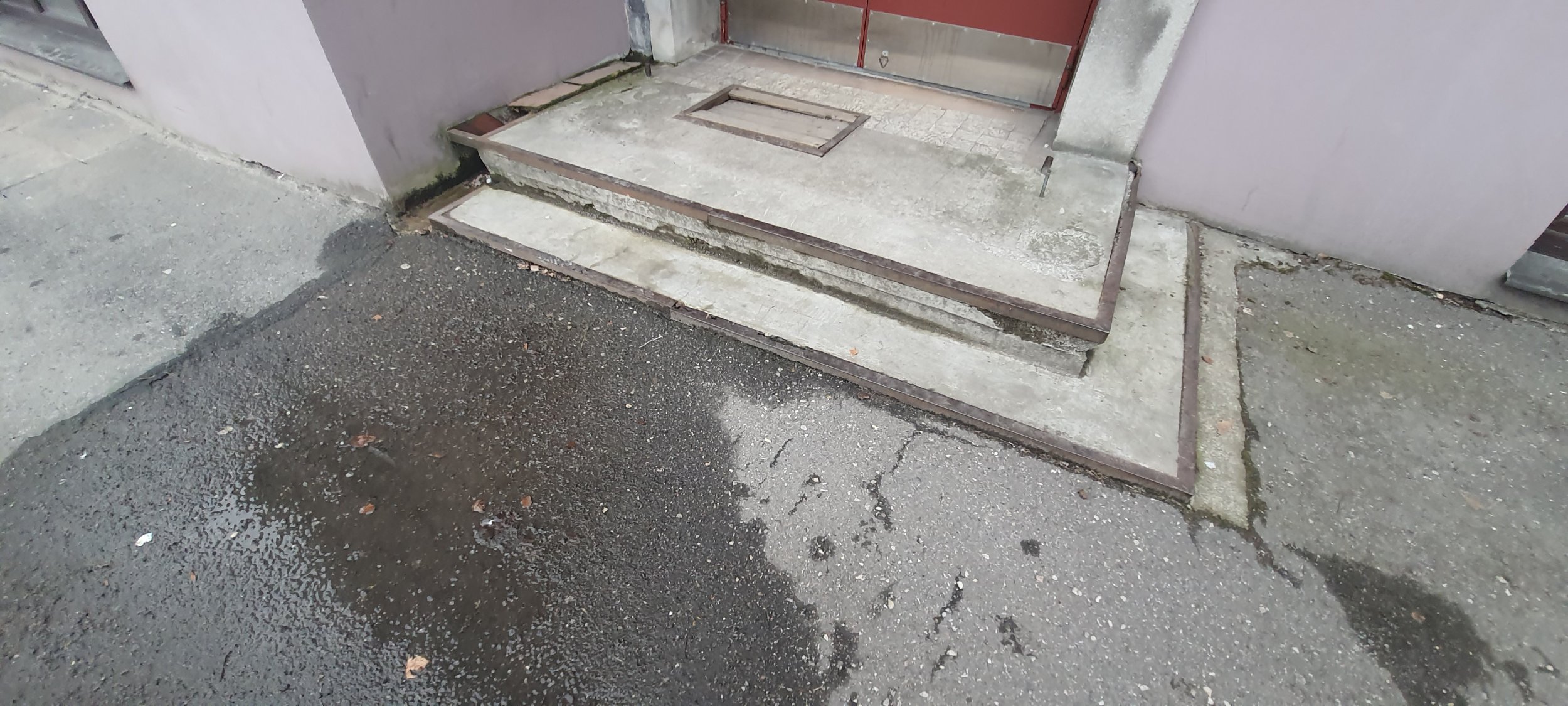 Soov paranda murenenud betoonist valatud kaks treppi kahe trepikoja välisukse ees.