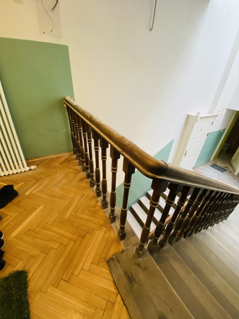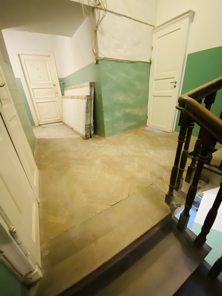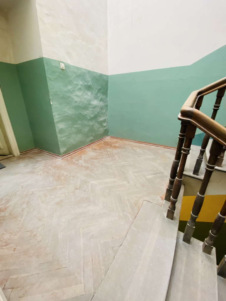 Lihvida, korrastada ja lakkida 2-3 korda. Paigaldada uued põranda liistud.