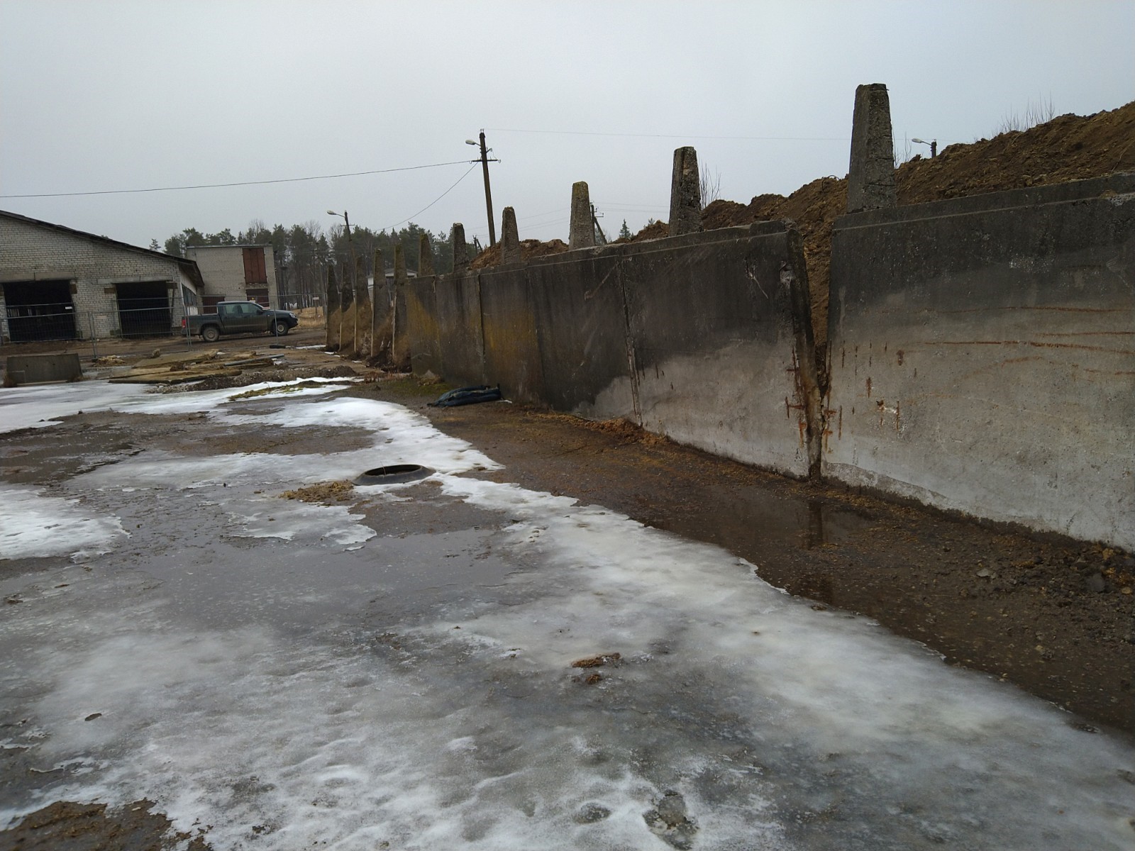 Tööks on vana sõnnikuhoidla seinaplaatide "tagasi panemine" . Postidele toetuvad betoonplaadid on kas maha kukkunud või eemaldunud. Töö sisu oleks 11 plaati tagasi panna. Selleks peaks plaadi aluse puhastama, tagasi tõstma/asetama. Töö lõpptulemuseks peaks olema see, et kõik plaadi toetuvad ilusasti toetuspostidele. Meie arvates oleks vaja postide tagune ära puhastada, plaatide alus puhastatada, plaadid tagasi oma kohele asetada. Muud tööd me teeme juba ise.