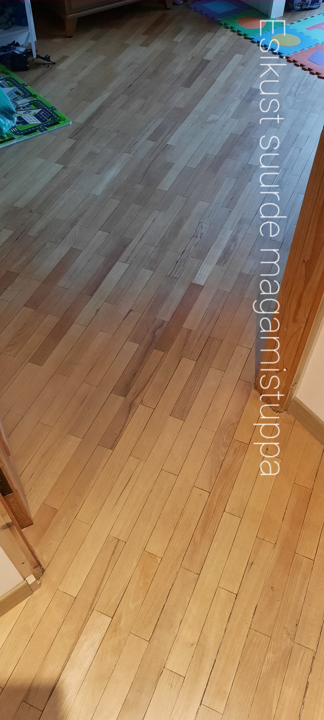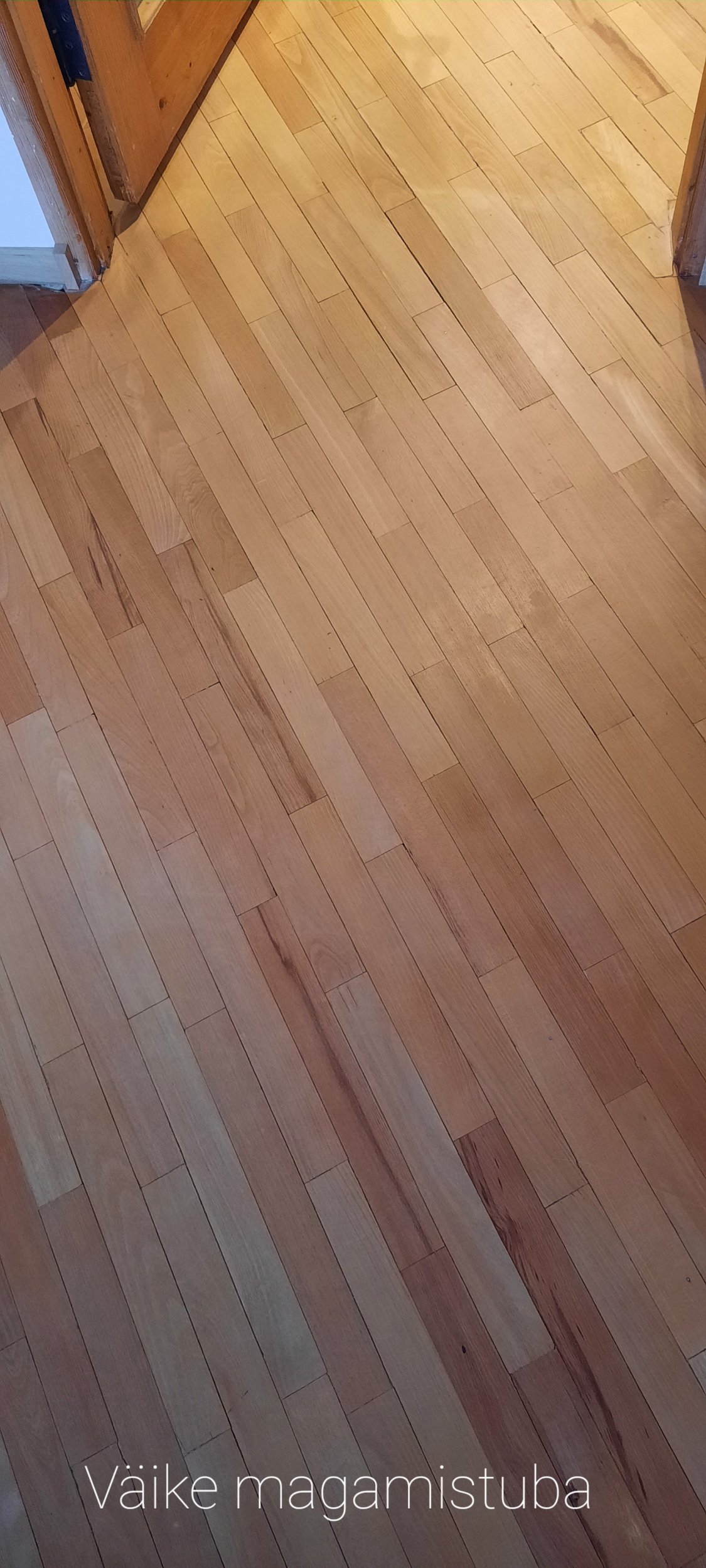 Lihvime põrandad, täidame vuugid kasutades Pall-X_Kitt puitpõranda kruntpahtlit. Teine lihvimine ning õlitamine ( 1 kiht )naturaalse õliga Rubio Monocoat. Hinnanguline tööde teostamise aeg 3-4 päeva |