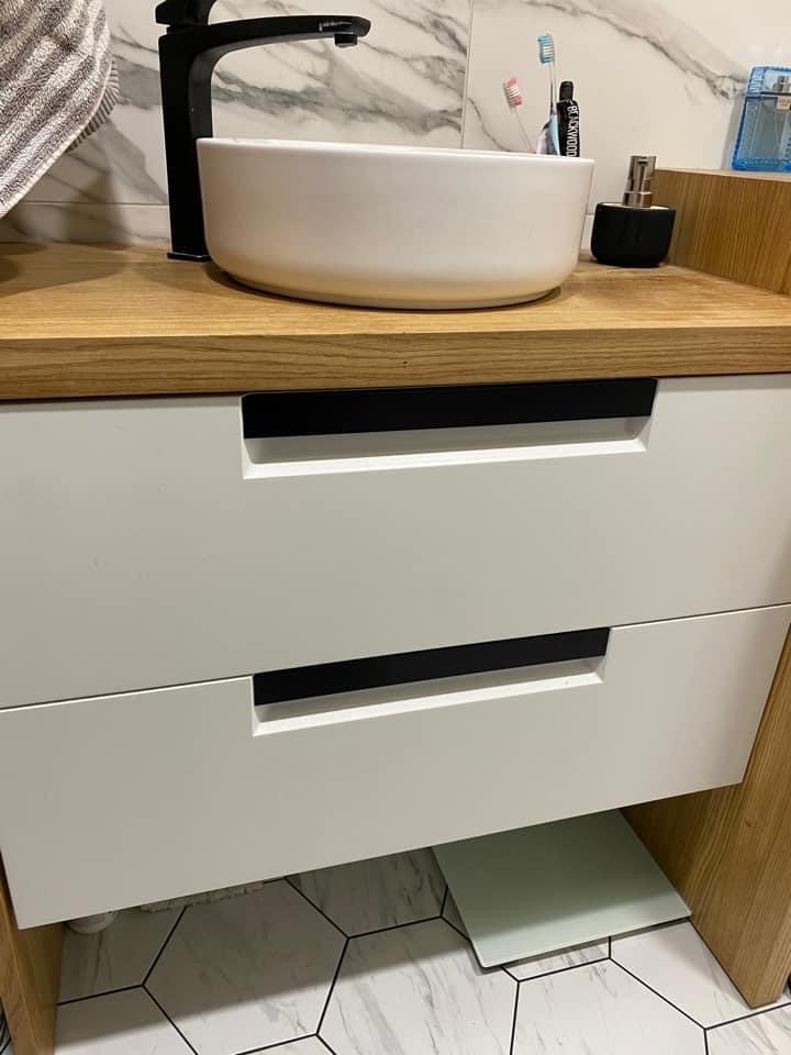 Soovin vannituppa viigipuust tasapinna alla sahtlit, kus asju hoida. Tasapinna laius on 116 cm pealt môôdetuna ja alla mahuks sahtel laiusega 112 cm. Sahtel vôib olla ka kahe osas (st kaks ca 56 cm laiust sahlit). Tasapinna all (umbes keskel) on kraanikausi âravoolu väljaulatuv osa (ulatub seinast ca 30 cm kaugusele). Tasapinna sügavus on 52 cm seega peaks olema sahtel (sahtlid) nii tehtud, et äravoolu toru mahub ära. Lisan pildid.