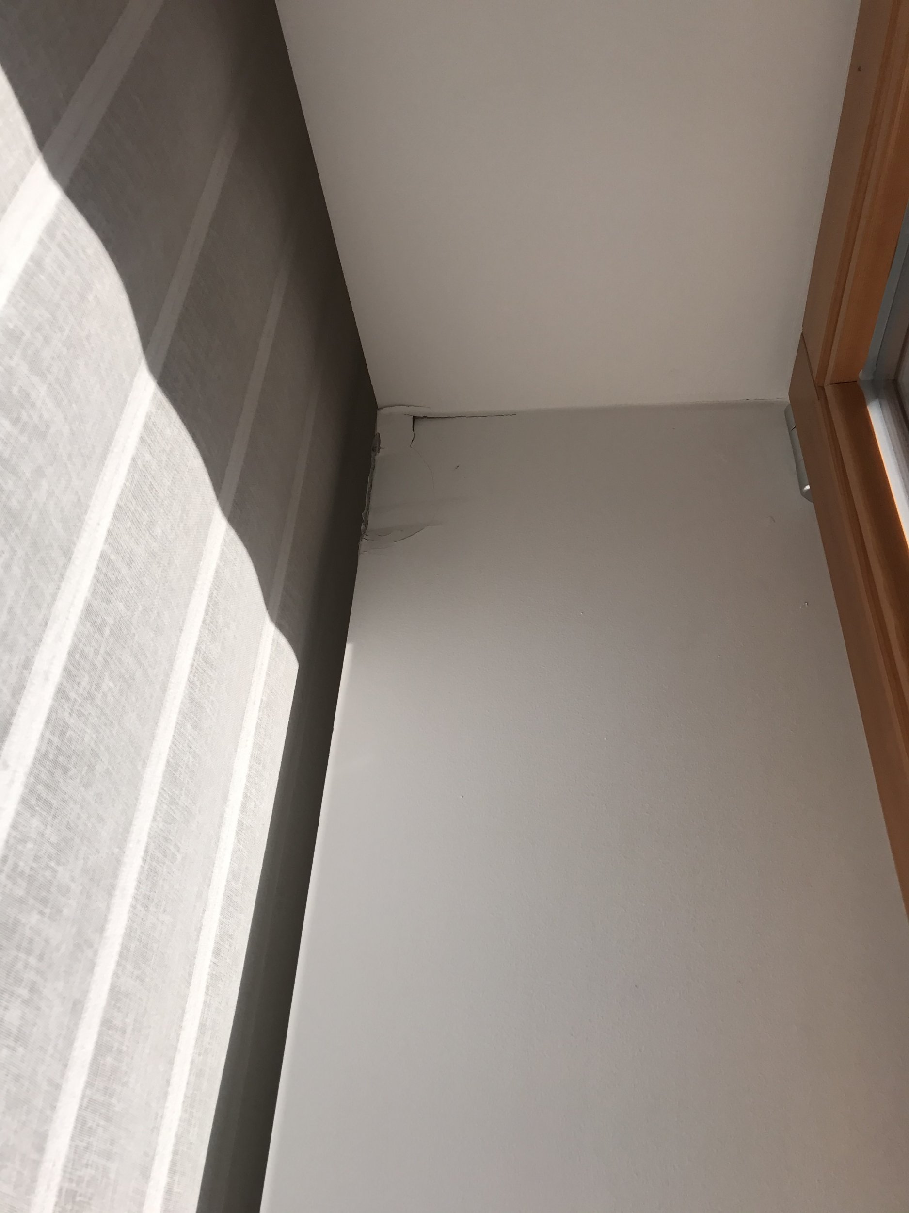 - 100m2 4-toalise korteri seinte pahteldamine ja värvimine. Enamuses seintes ja seinte nurkades väikesed täkked, kuid lisaks on akna juures suurem kahjustus (ca 20X30cm) nagu oleks krohv lahti vms (vt fotot). Ilmselt vajavad täitmist ja ülevärvimist ka kõikide aknaraamide ja seina kokkupuutekohtades olevad praod. Infoks et tegu on 6 aastat vana kivimajaga.