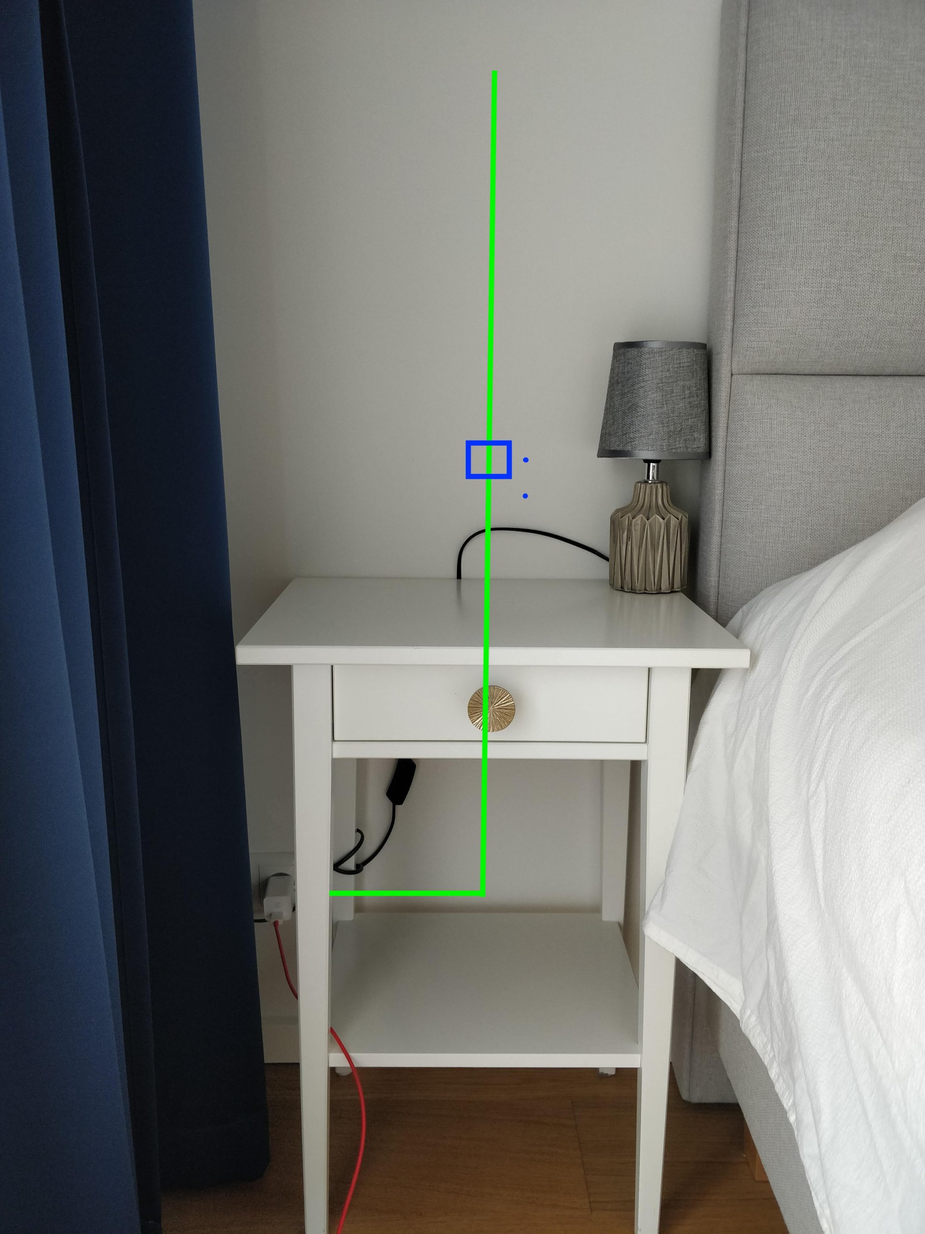 Freesida seinalambi juhtmestik seina lähedal asuvatest pistikutest.