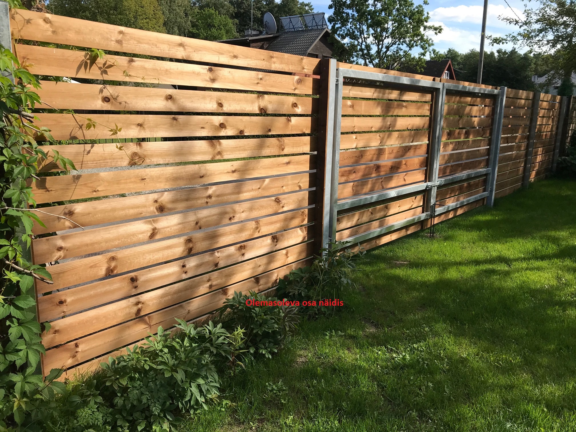 Aialippideks kasutada pruuni sügavimmutatud hööveldatud lauda laiusega 110mm, mis kinnitatakse postidele horisontaalselt, laudade vahe jätta ca 17mm ja betoonist ca 35mm. Kinnitamiseks kasutada ilmastikukindlaid kruve ja postidel betoonitüübleid. Lauad paigaldatakse nii, et postid jäävad aiast sissepoole. Jalgvärava osale on vaja valada betoonvundamet, kaeve osaga pole vaja arvestada ega pakkuda ning värava asukoht jätta aia osa keskele. Liugvära osa(pildil 5m lõik) selles töös ehitada ega pakkuda pole vaja.