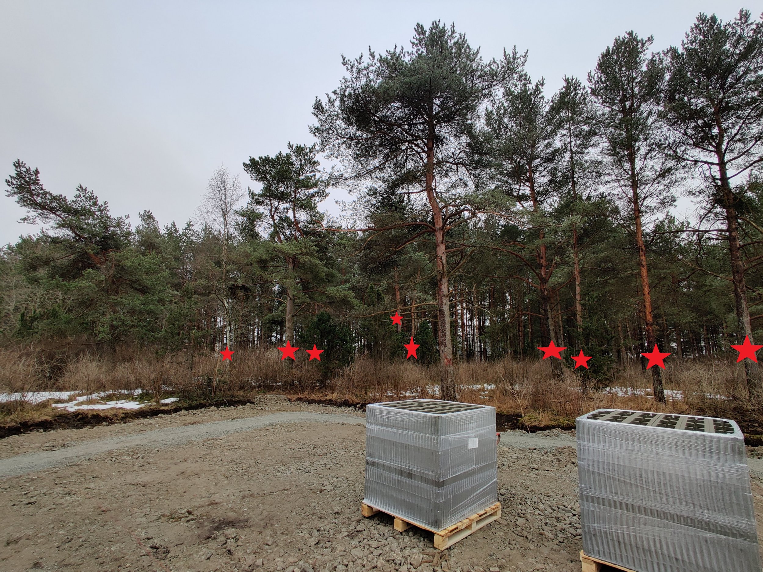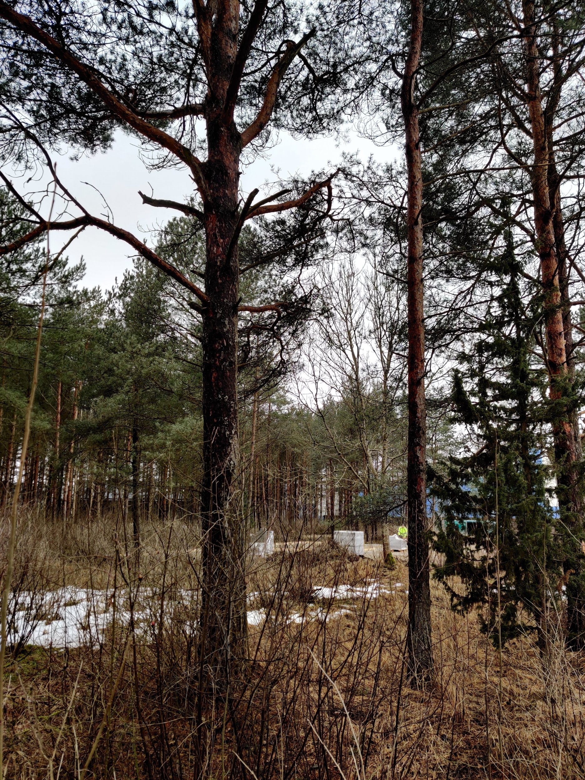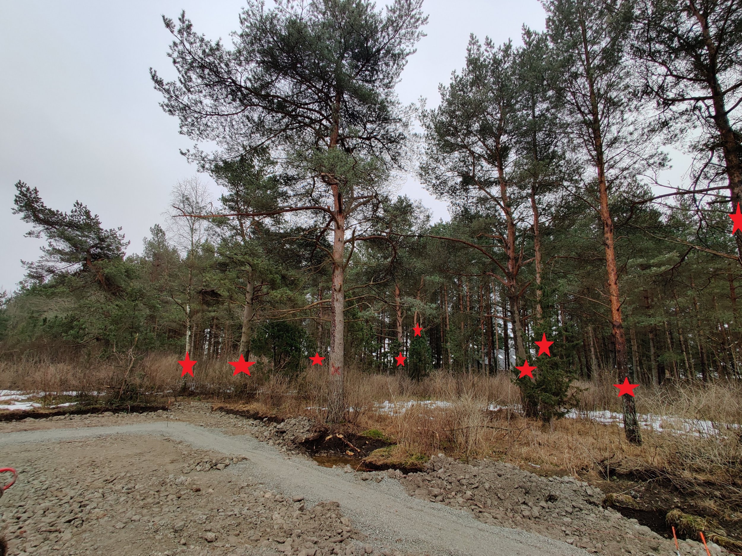 Võtta maha 9 puud, 8 mändi, 1 kask. Enamikel läbimõõt paarkend sentimeetrit, paar tükki natuke jämedamat. Kännud võiks kas täitsa eemalda või freesida täiesti maadligi. Samas kõrval on maja ehitus pooleli, tuleb jälgida et puud sinna peale ei kukuks.