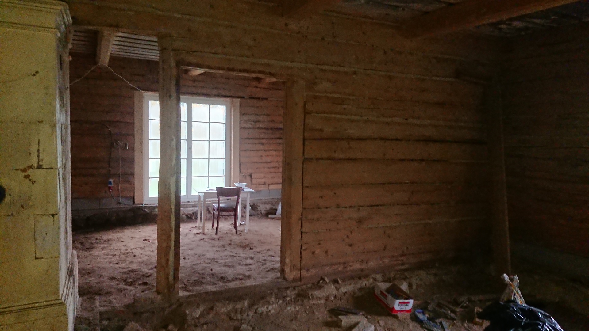 Kogu eluhooneosas on vaja siseseinte alusvöö taastada. Teha hüdroisolatsioon, korrastada alusvundament ja osaliselt on vaja välja vahetada aluspalgid, asendada kas fiboga või prussidega.