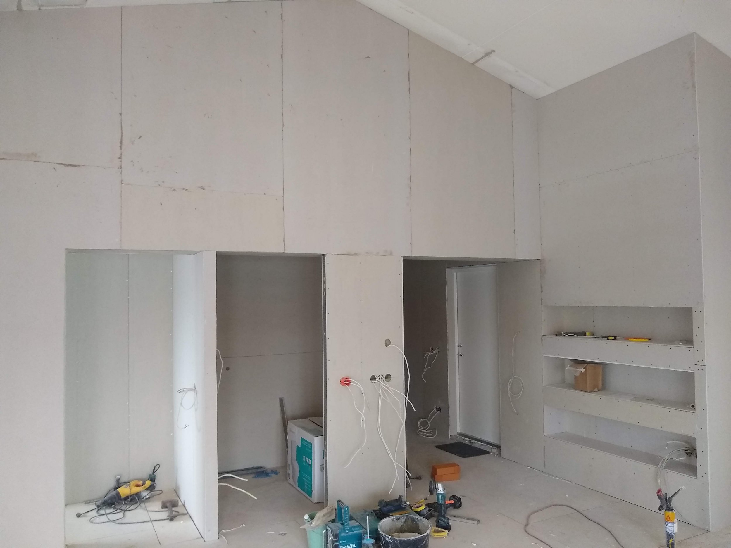 Kipsseinte viimistlus – nurkade paigaldus, vuukide 2x pahteldus, lauspahtel 1x, kruntimine 1x, värvimine 2x, 240m2