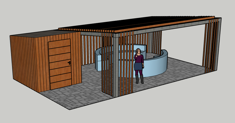 Piltide juurde on lisatud paar fotot valmisolevatest lahendustest, et paremini arusaada stiilist. Planeeritavast rajatisest on lisatud 3D vaated kood mõõtudega. (3D piltidel kujutatud ka istumisala, mis ei kuulu töö juurde)