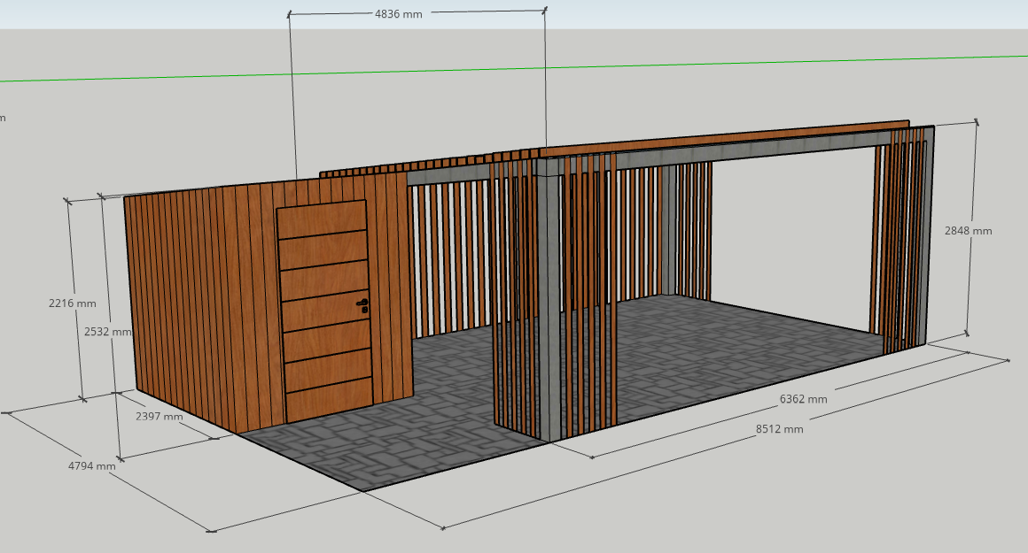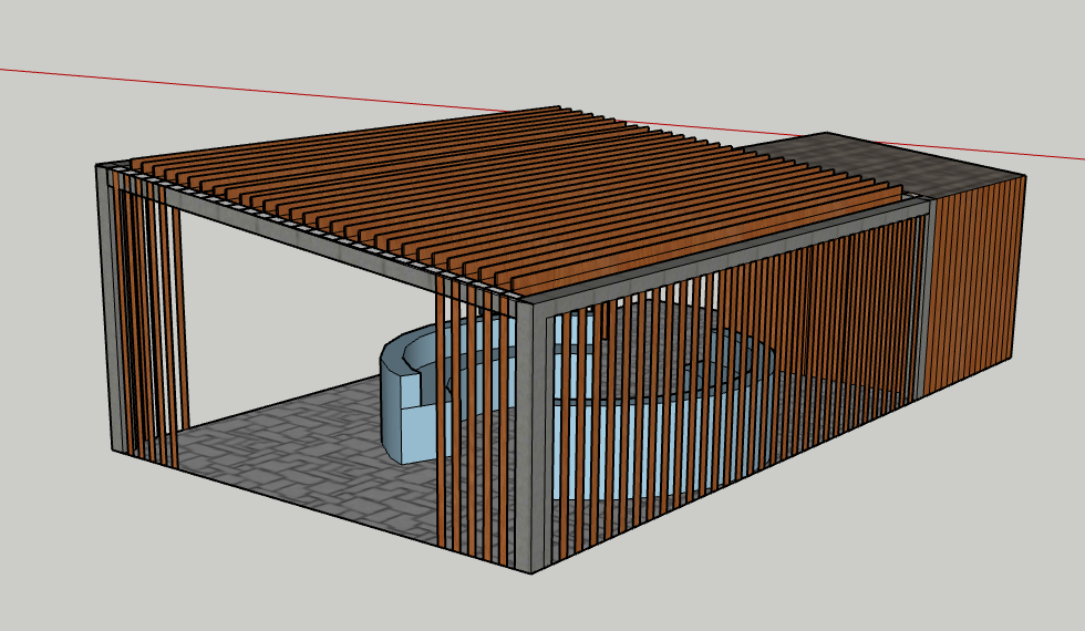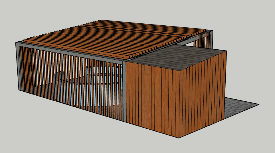 Soovime ehitada aeda pergola koos väikese aiakuuriga. Pergola on majast natukene eemal ning aluseks tuleks looduslikust kivist põrand. Pergola katusele on mõeldud luukidega mehhanism, mis võimaldab katust sulgeda ja avada. Suletud katus peaks olema ka vihma kindel ning vihmavee äravool suunatud.