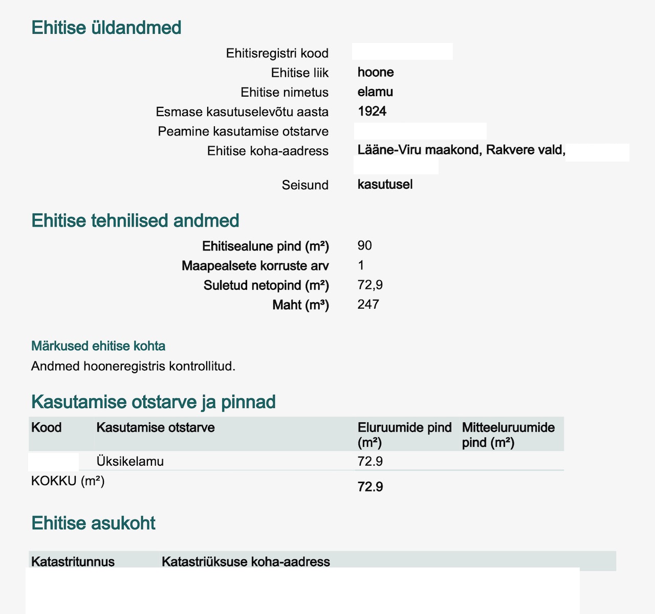 Elamu ehitusalune pind on 90 m2, suletud netopind 72,9 m2 ja kubatuur 247 m3.