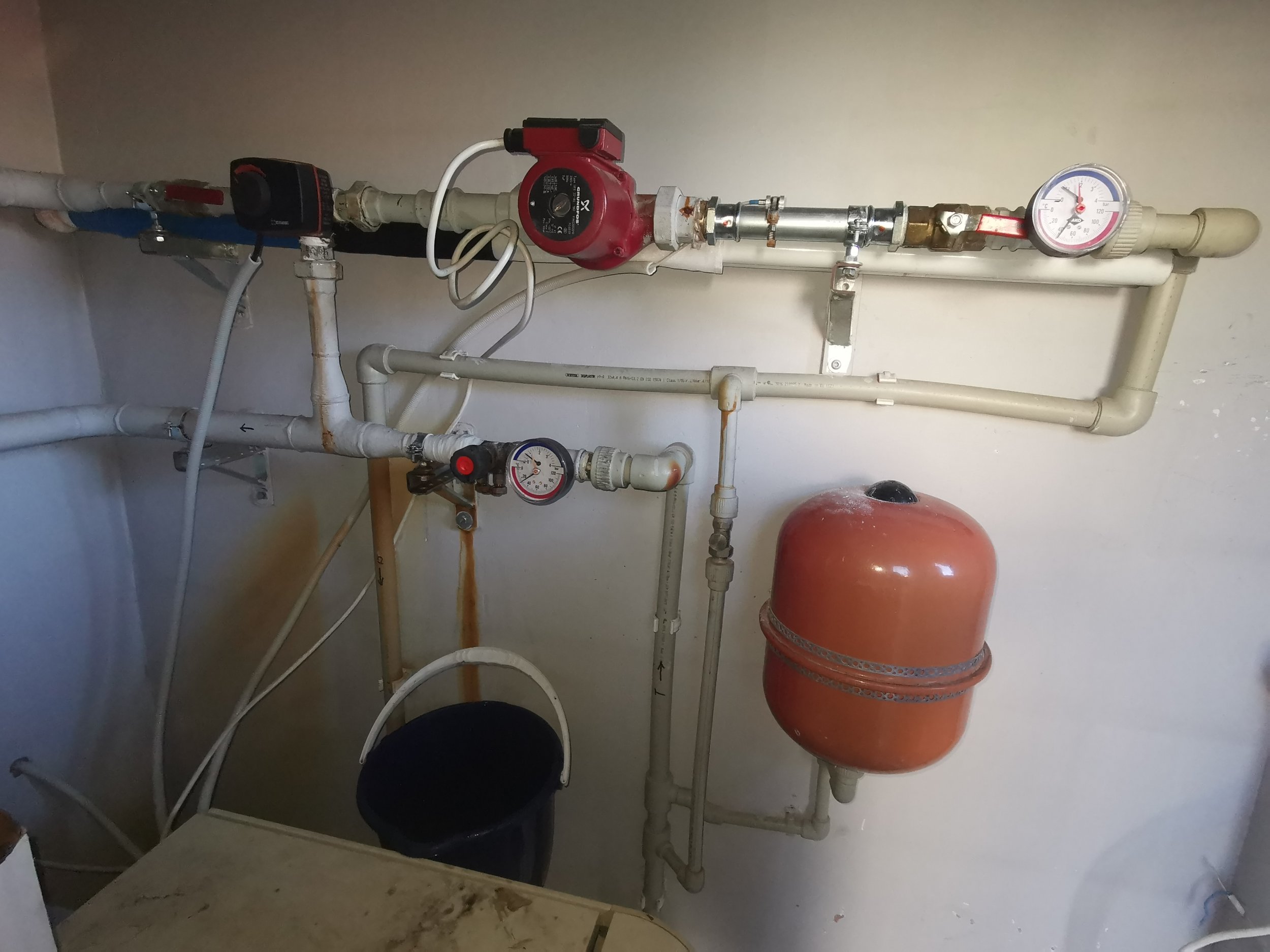 Meie katlaruumis lekib põrandakütte tagasivöölutoru, mis on ilmselt keerme juurest läbi roostetanud. Hetkel teip peale tõmmatud, kuid tilgub siiski päris palju.