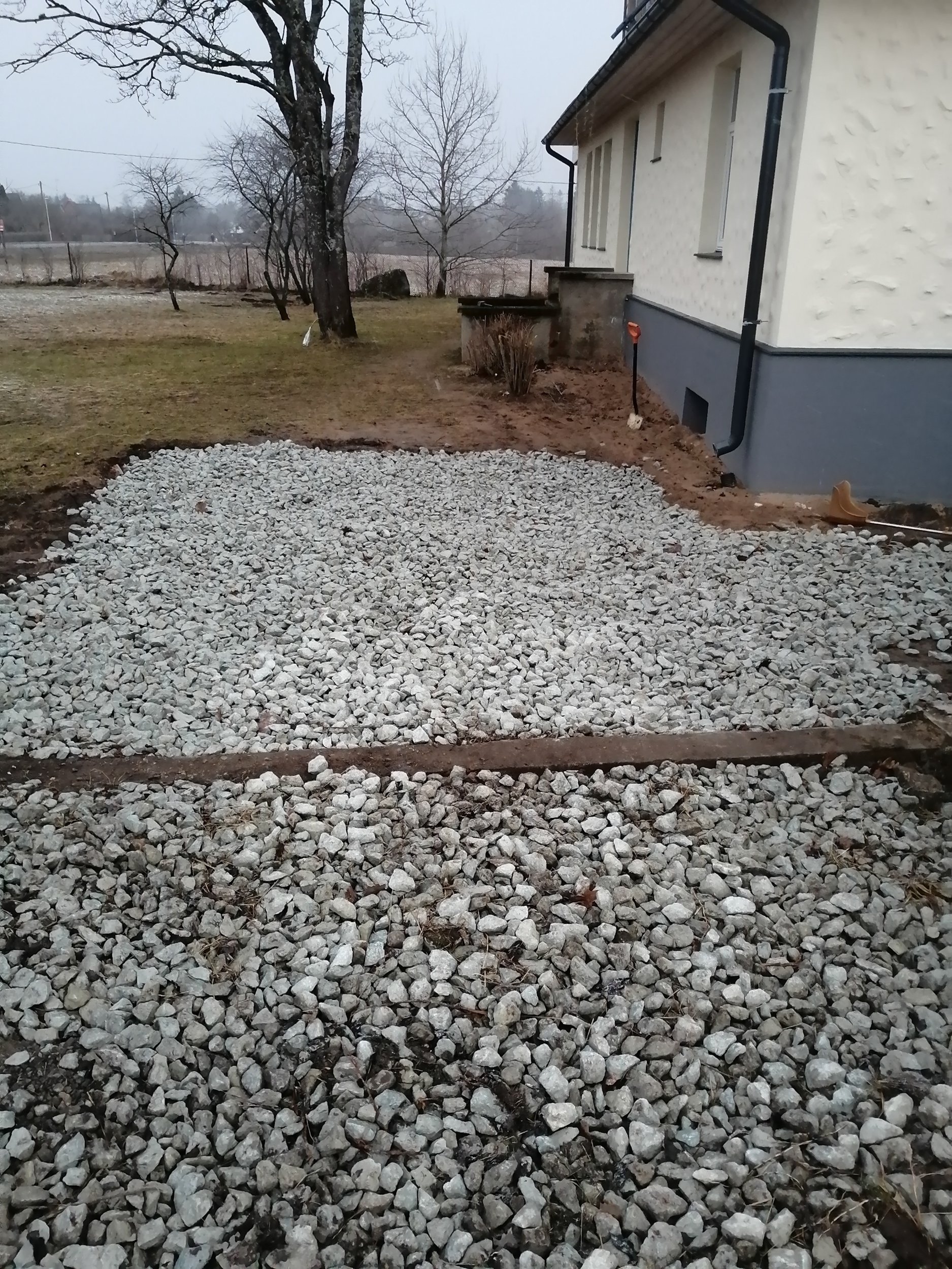 Palun pakkumist tänavakivi paigaldusele. tarvis ehitada 20m2 kõnniteed ning 20m2 parklat. Väljakaevamine ning killustik ca 15cm paigas kuid tihendamata. Kivide paigaldamiseks kasutada kiviliiva. Olemas ca 18m2 mungakivi halli fram. Äärteks kasutada plastikut ca 40m.