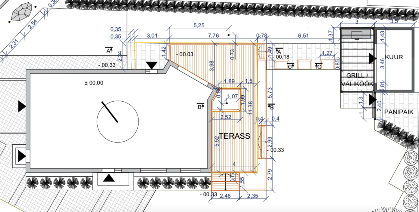 Plaanil näidatud terrassi ehitus, kokku 58 m2.